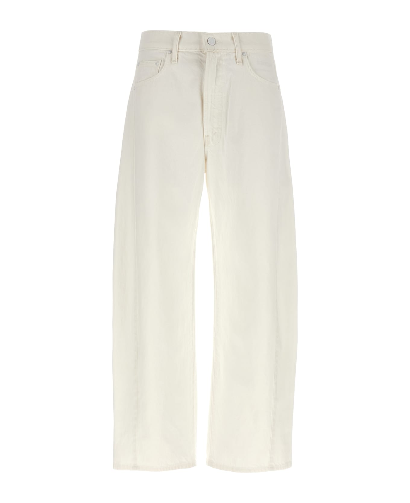 Picket Fence 'The Full Pipe Ankle' rigid denim jeans with high waist, wide barrel leg, zip and front button closure, five pockets.