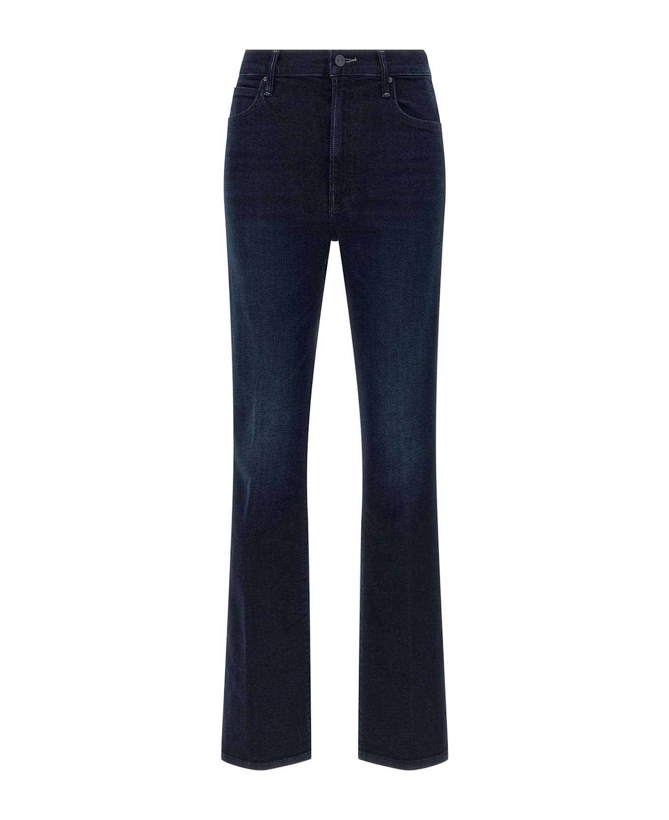 'The Mid Rise Smokin Skimp' stretch denim jeans with subtle washed and whiskering effects, mid waist, zip and front button closure, five pockets.