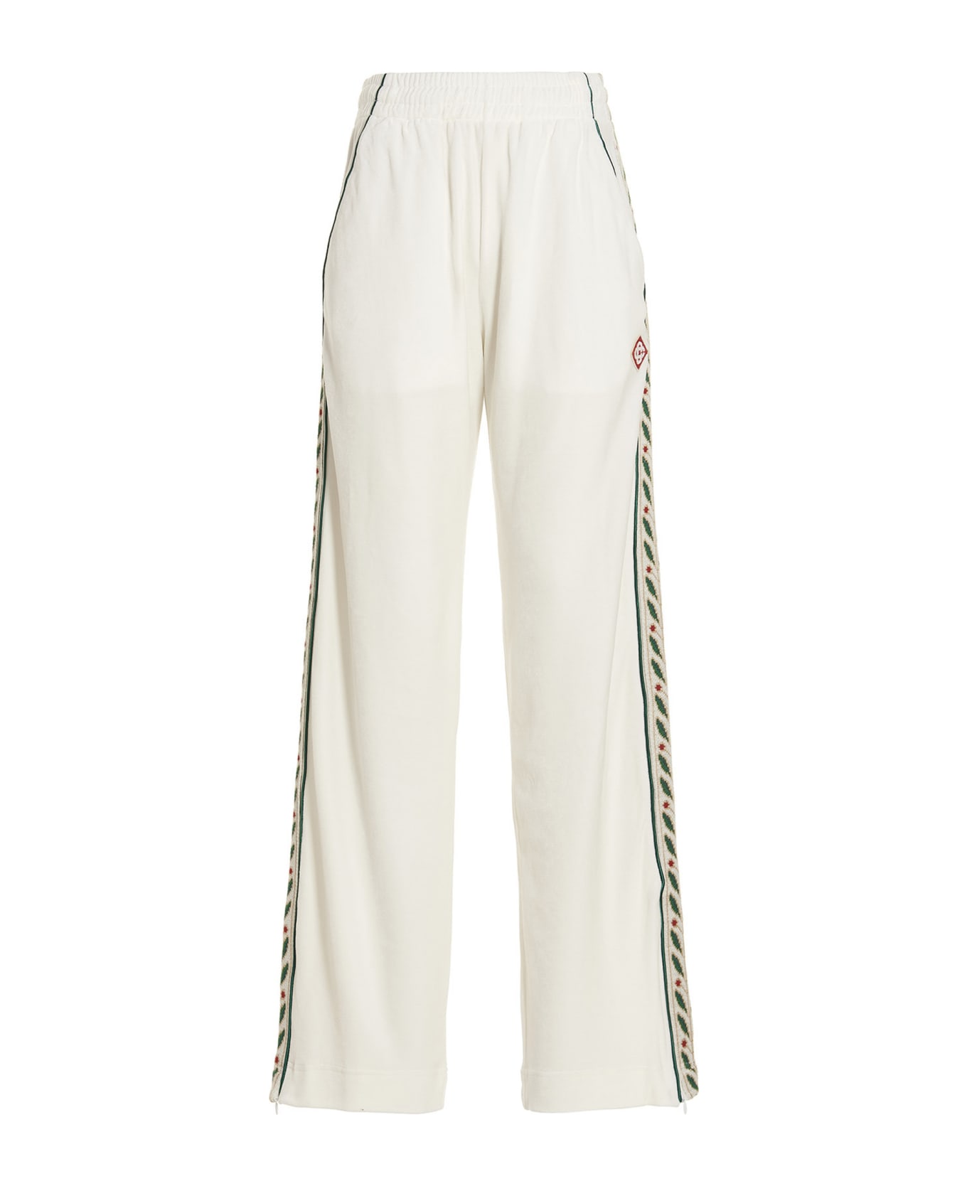 Brunello' velvet joggers with contrast side bands, n elastic and a drawstring at the waist, pockets, zip detail on the leg bottoms and a logo patch. Composition: 40% cotton 40% modal 20% polyester