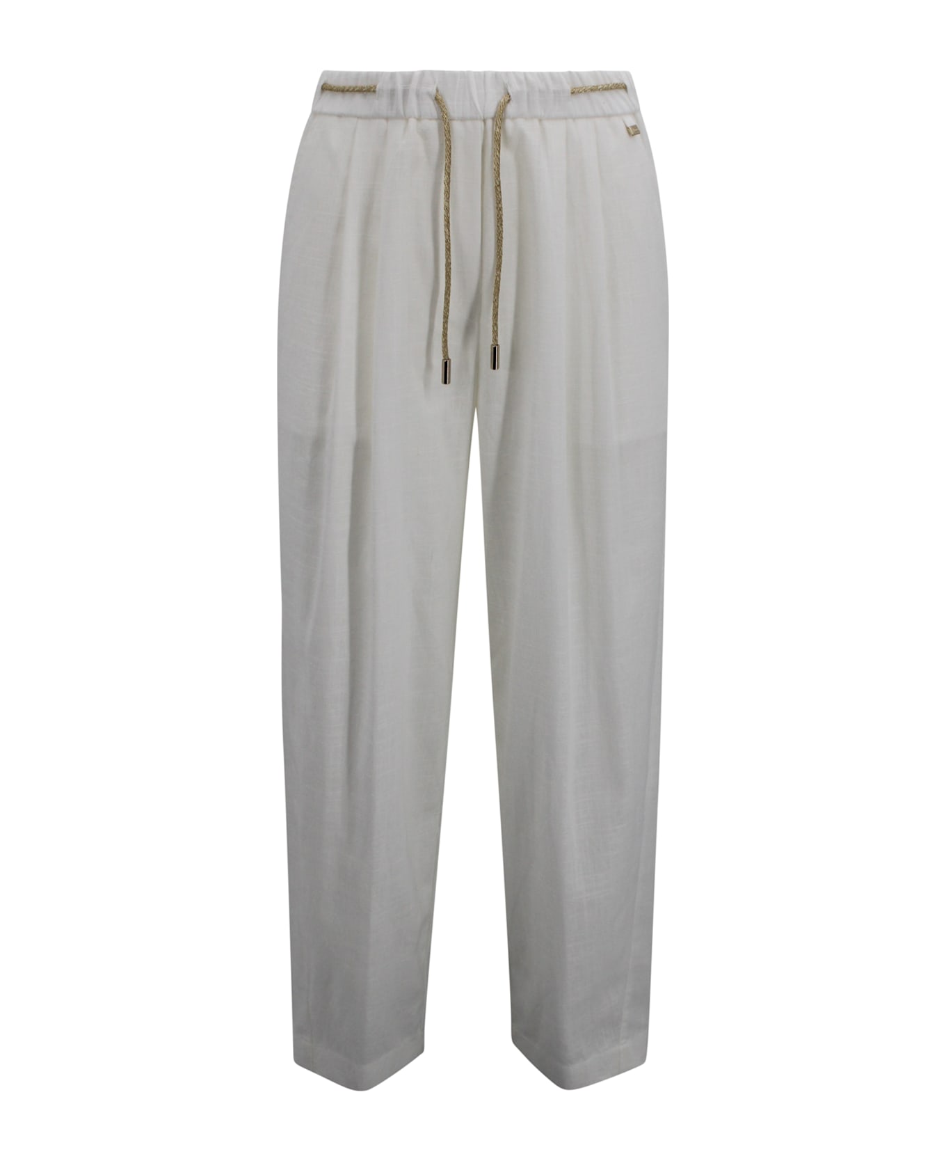 Trousers crafted in white, featuring an adjustable drawstring waist and a straight-leg silhouette. The clean design ensures comfort and versatility, ideal for relaxed contemporary styling.