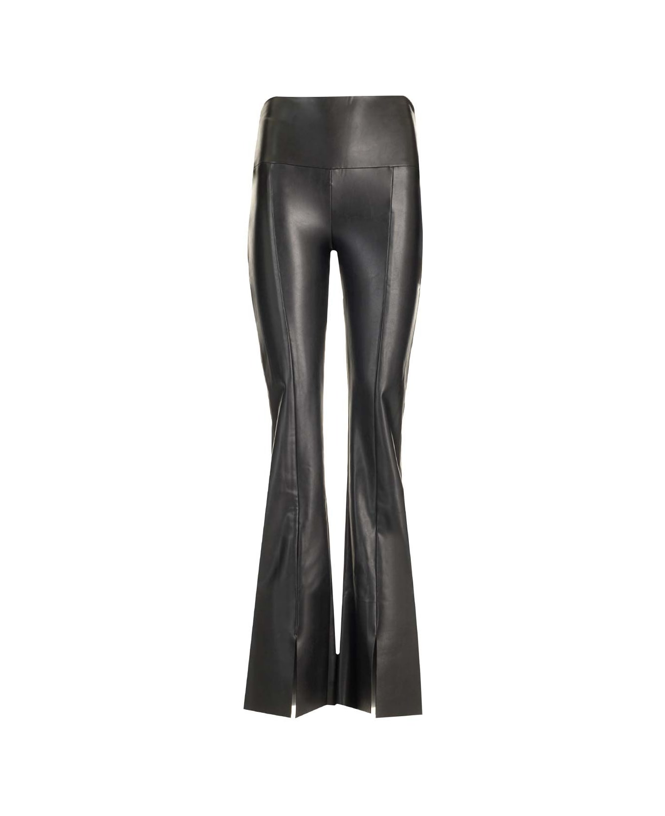 Black trousers from Norma Kamali in stretch faux leather, high waist, flared hem with slits, skinny fit. Composition: 100%PU