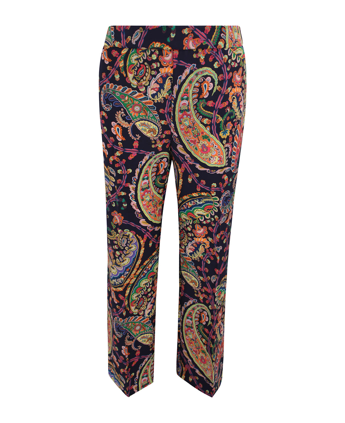 Features Color: dark blue Paisley pattern Floral print Bootcut flare Stretch fabric Origin: Italy