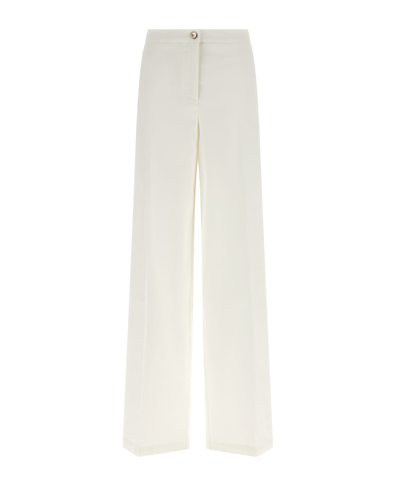 'Jacopone' stretch linen pants, wide and straight leg, stretched pleat, front zip and button closure, front American pockets, back welt pockets. Composition: 60% li, 35% vi, 5% ea