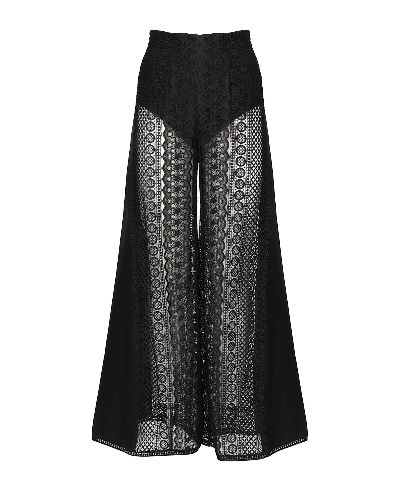 -Made of cotton and silk blend -Wide leg -Partially lined -Semi-transparent -Made in Portugal -The size shown in the photo is XS -Color: Black