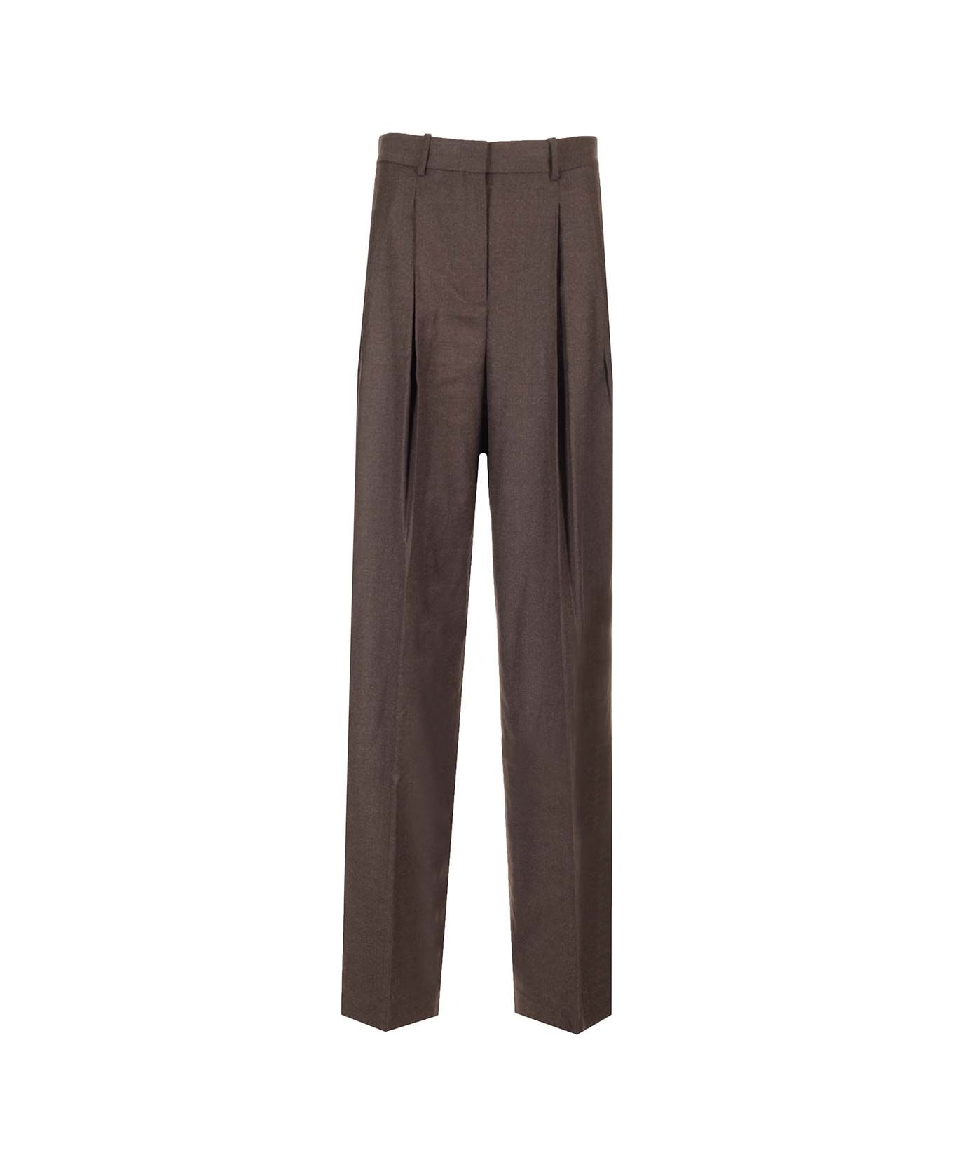 Theory trousers in wool, high-waisted, with central iron pleat and pleats. Side slanted pockets.