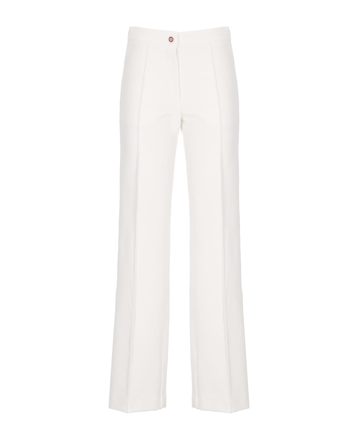 - White Casablanca pants for woman - Front fastenign zip and snap buttons - Two side zip pockets - Rear contrasting color loged patch - Contrasting bands of light blue and red