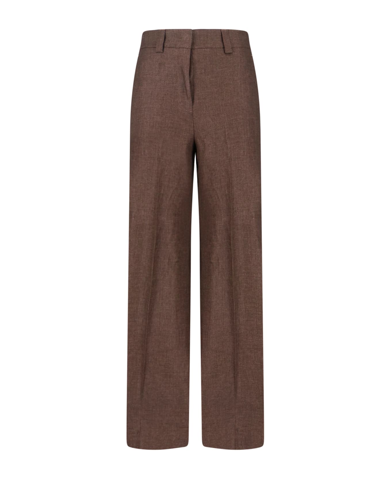 - Tailored brown linen pants Incotex - mid-rise - hook and zip closure - belt loops - front pleats - two side pockets - two back welt pockets - straight leg