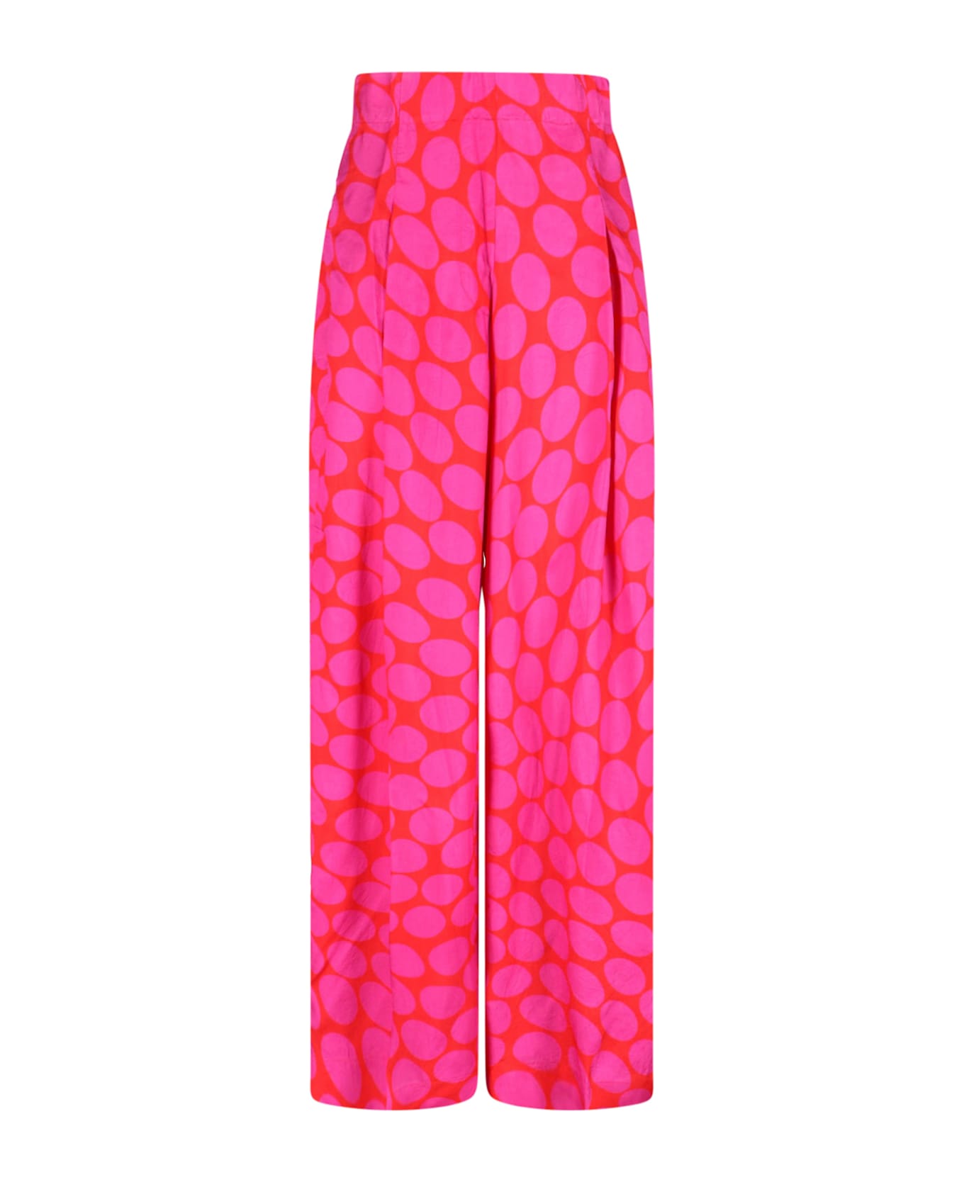 Dries Van Noten viscose wide trousers, fuchsia, all-over geometric design, high waist, two side pockets, two back pockets, wide leg.