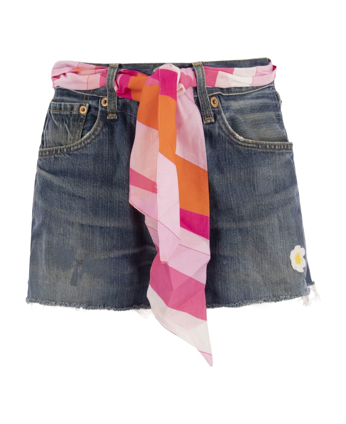 Pouch-style denim shorts, made unique and original by the embroidery and patches on the pockets and matching coloured scarf. - Waist scarf - Frayed bottom - Regular fit DESIGNER ID: ARZ0001 07578D Composition: 100% Cotton