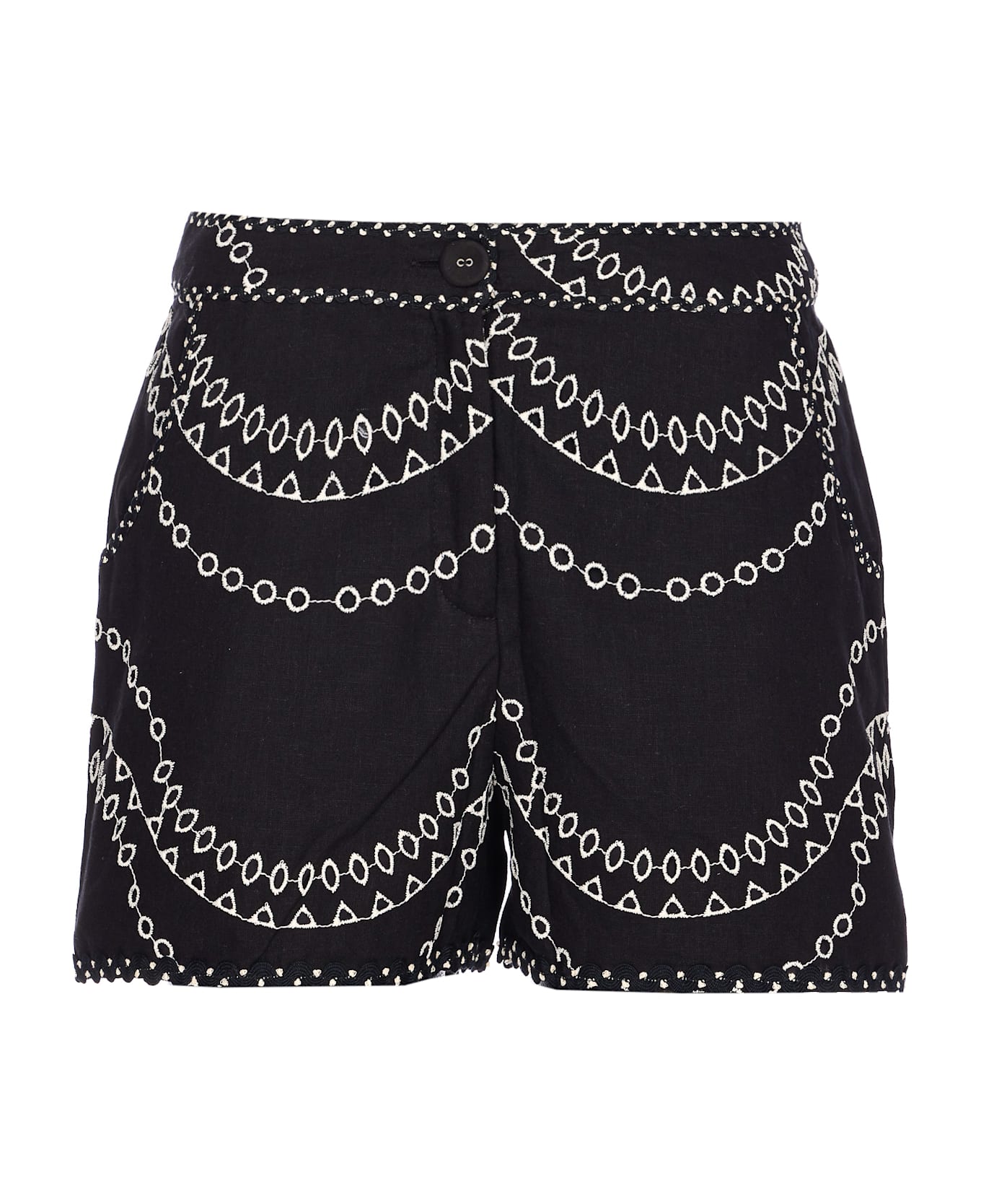 Charo Ruiz Ibiza black Drea shorts, zip and button closure, lateral pockets, embroidered, pockets