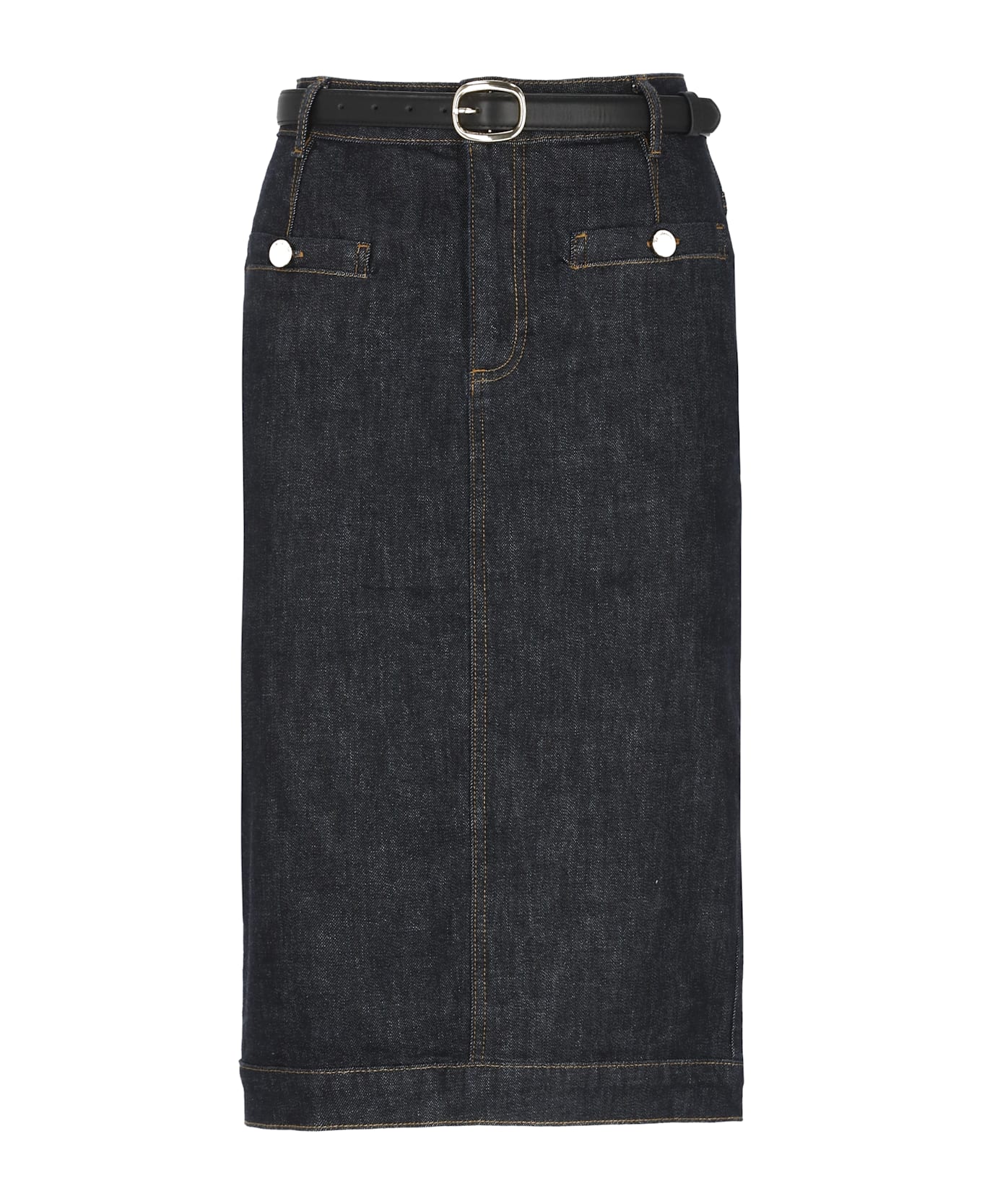 - Blue Self Portrait cotton skirt for woman - Belt loops - Front zip and button fastening - Two front pockets with button - Leather belt included - One rear slit at hem