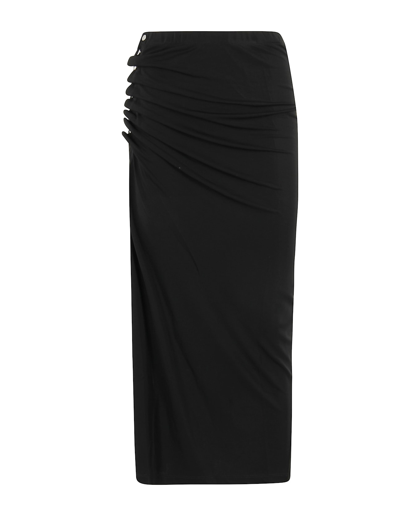 Skirt - Rabanne - Jupe model - Black color - Long - Draped front - Side buttons - Side slit