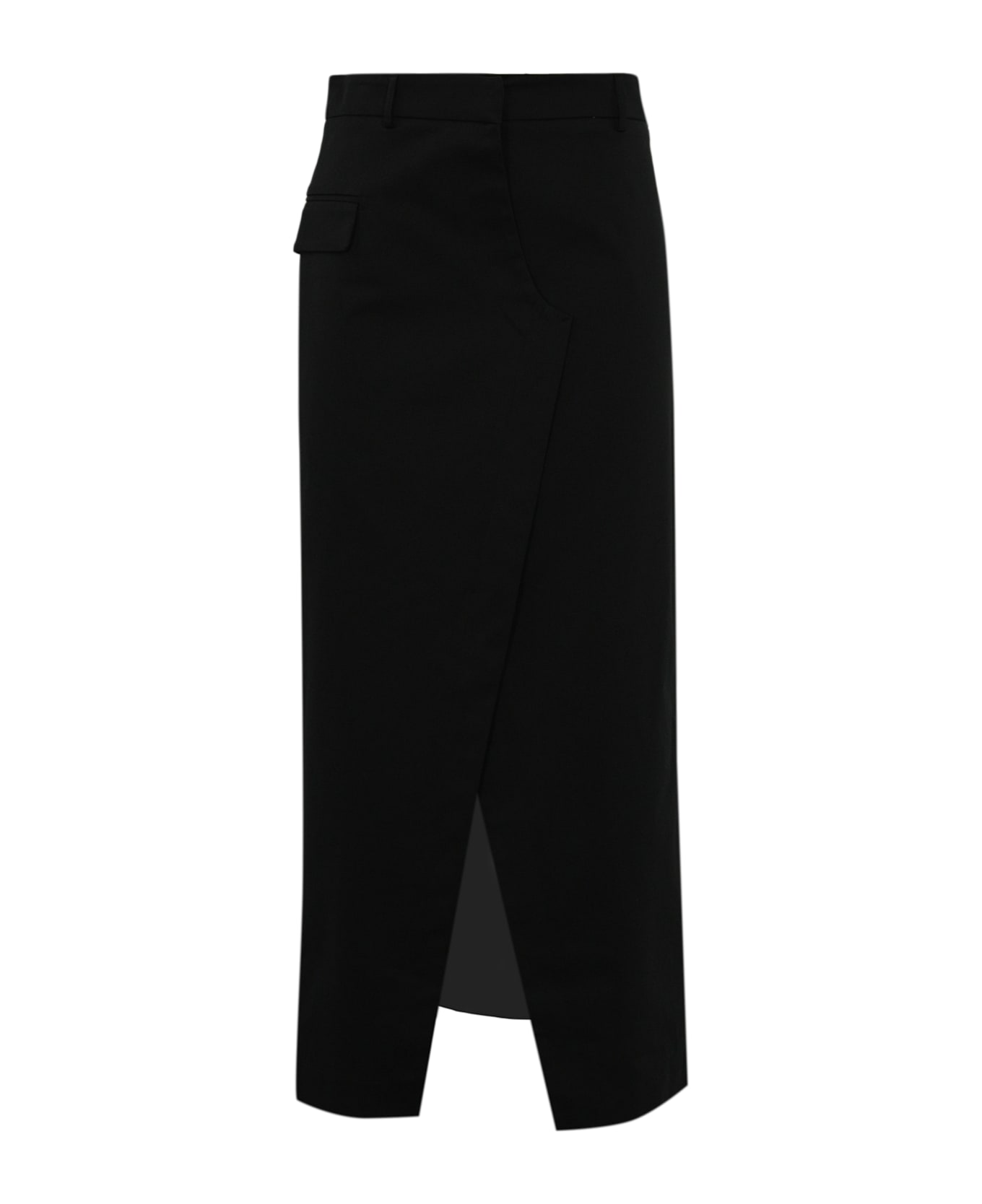Midi Skirt With Slit In Black Cotton
