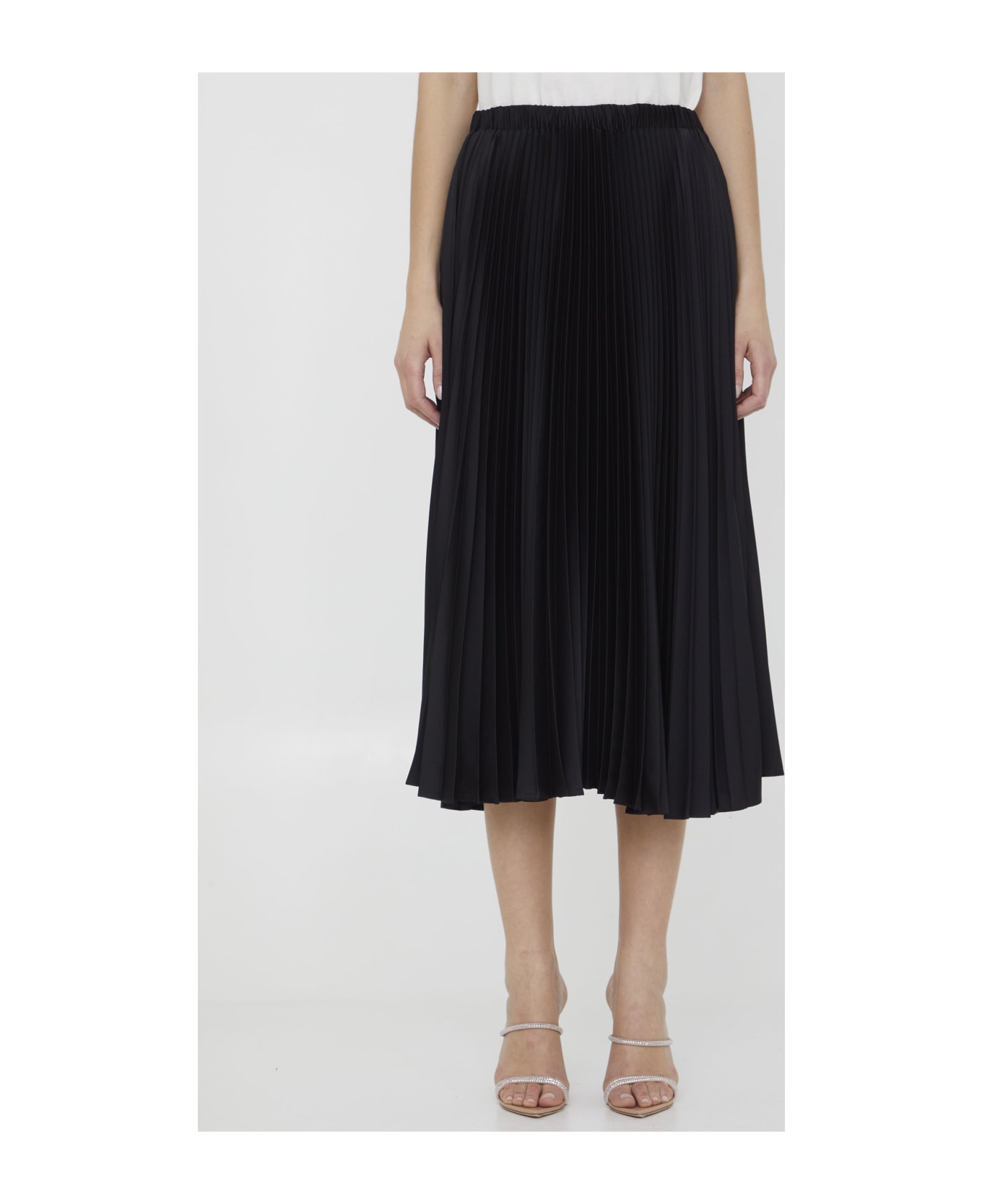 Midi skirt in black pleated jersey with stretch waistband. Relaxed fit. The model is 183cm tall and wears size DE 36.
