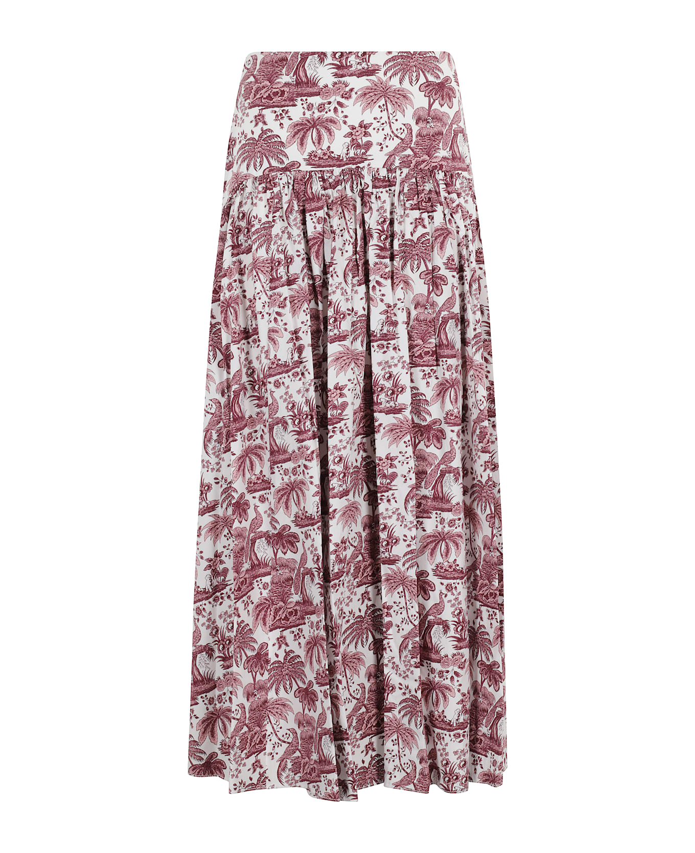 Procida skirt - Staud - burgundy floral print on white background - concealed back zipper closure - wide design - curved yoke on hips - ankle length