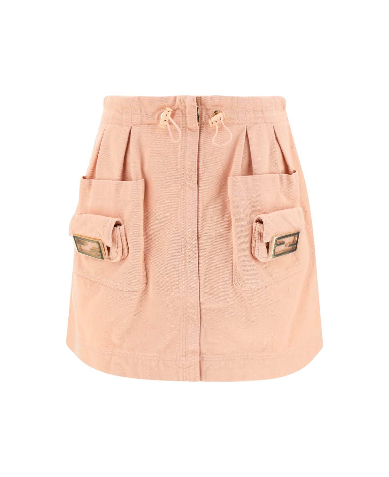 Cotton skirt by fendi, concealed front zip fastening, elasticated waistband with drawstring, two large cargo pockets on the front, plaque with iconic brand monogram applied to both pockets, mini model.