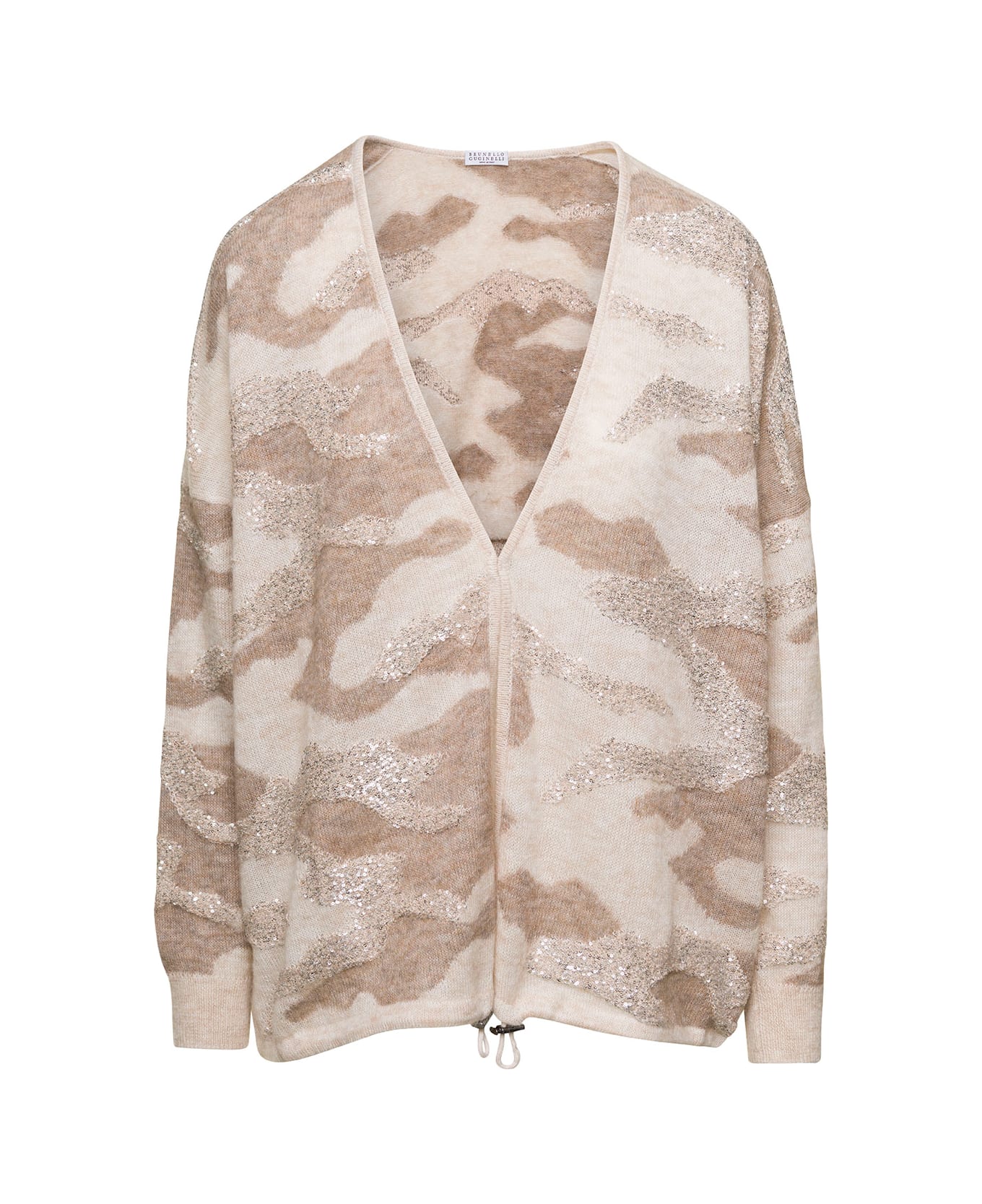 Cardigan V-neck Long sleevesCamouflage motif all-over Beige Regular fit Composition: