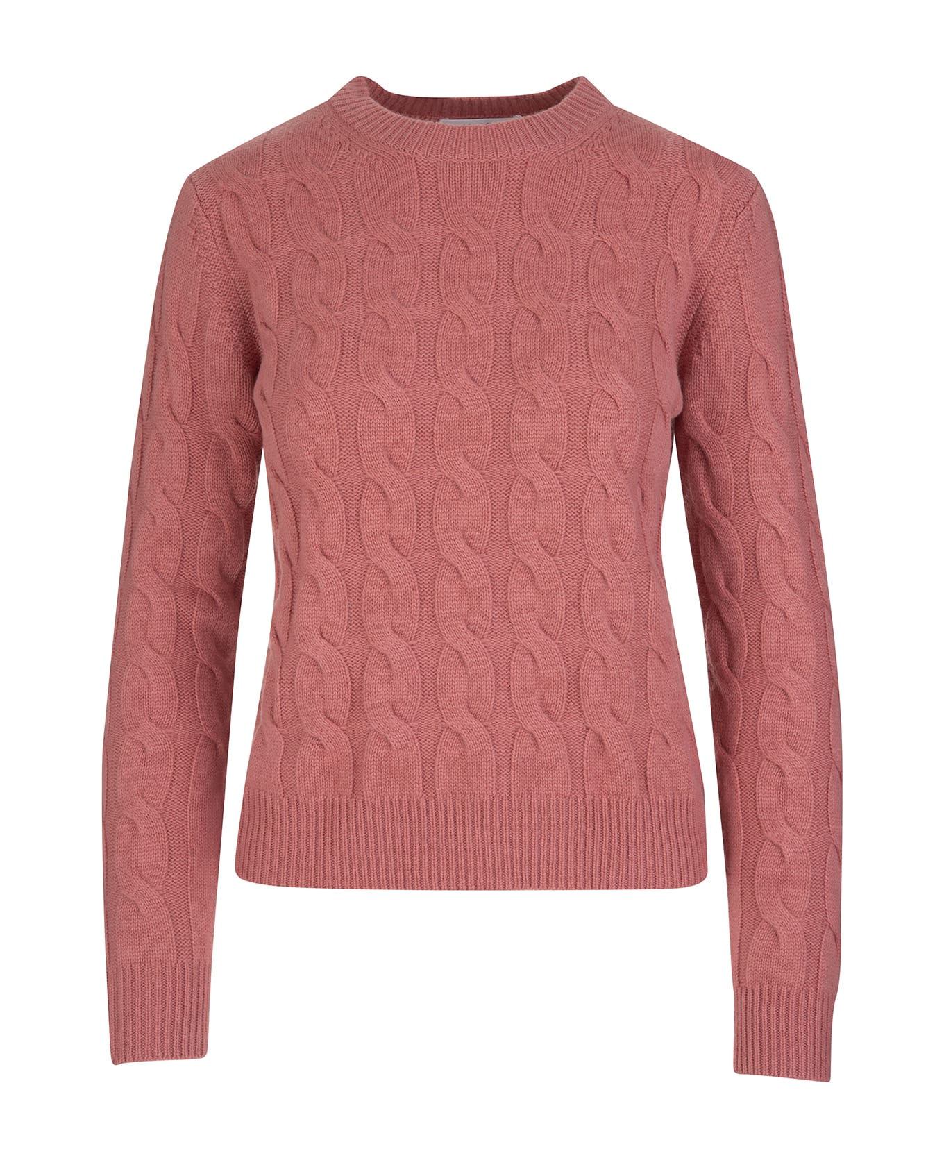 Blush Edipo women's sweater by Max Mara made of pure cashmere yarn worked in braid. Model featuring a regular fit style with a crew neck, long sleeves, a straight hem and classic ribbed edges.