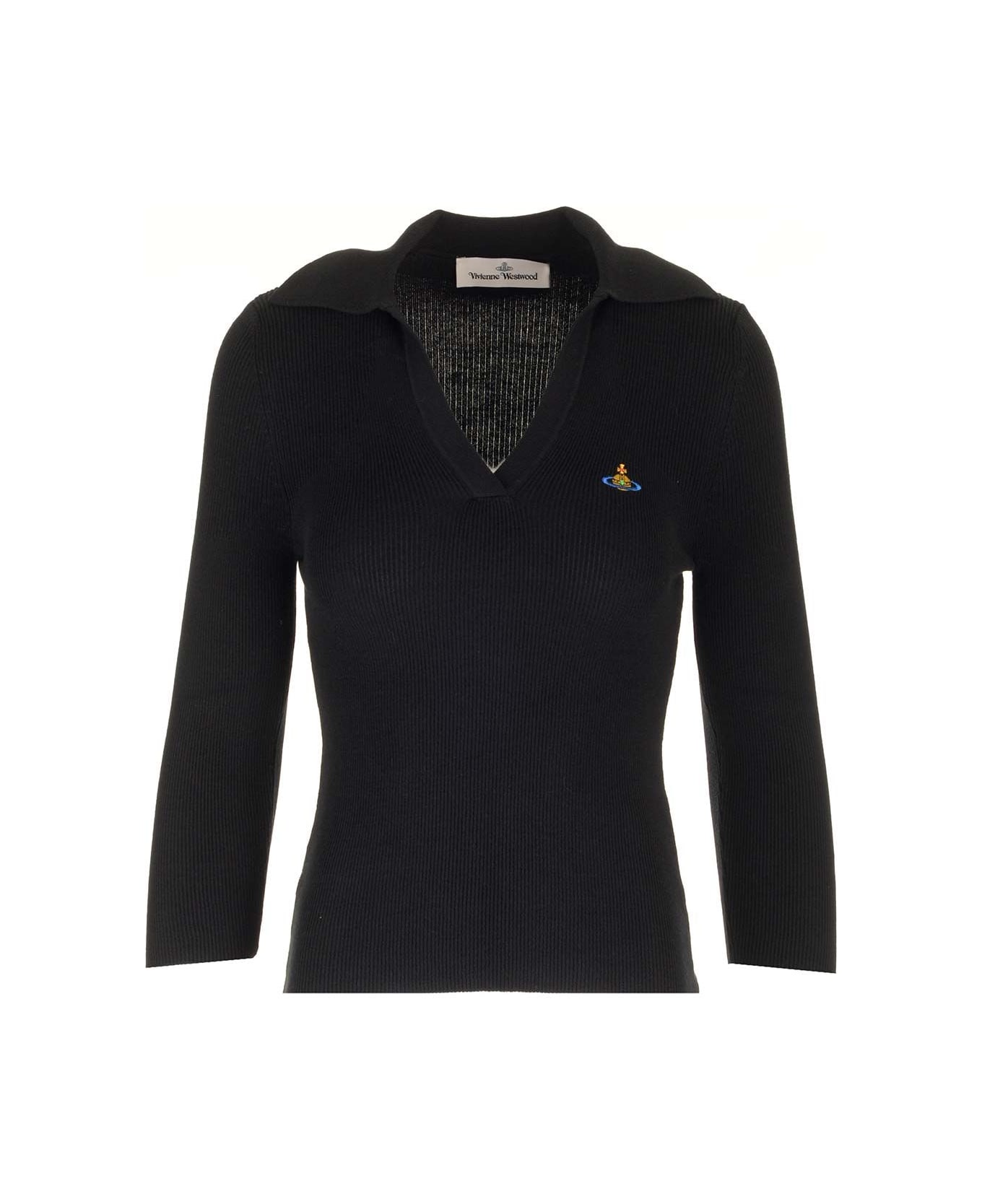 "Marina" polo shirt from Vivienne Westwood, made of recycled cotton blend ribbed knit. "Orb" logo embroidered on the chest, straight hem, classic polo collar, slim fit. Composition: 100% cotone
