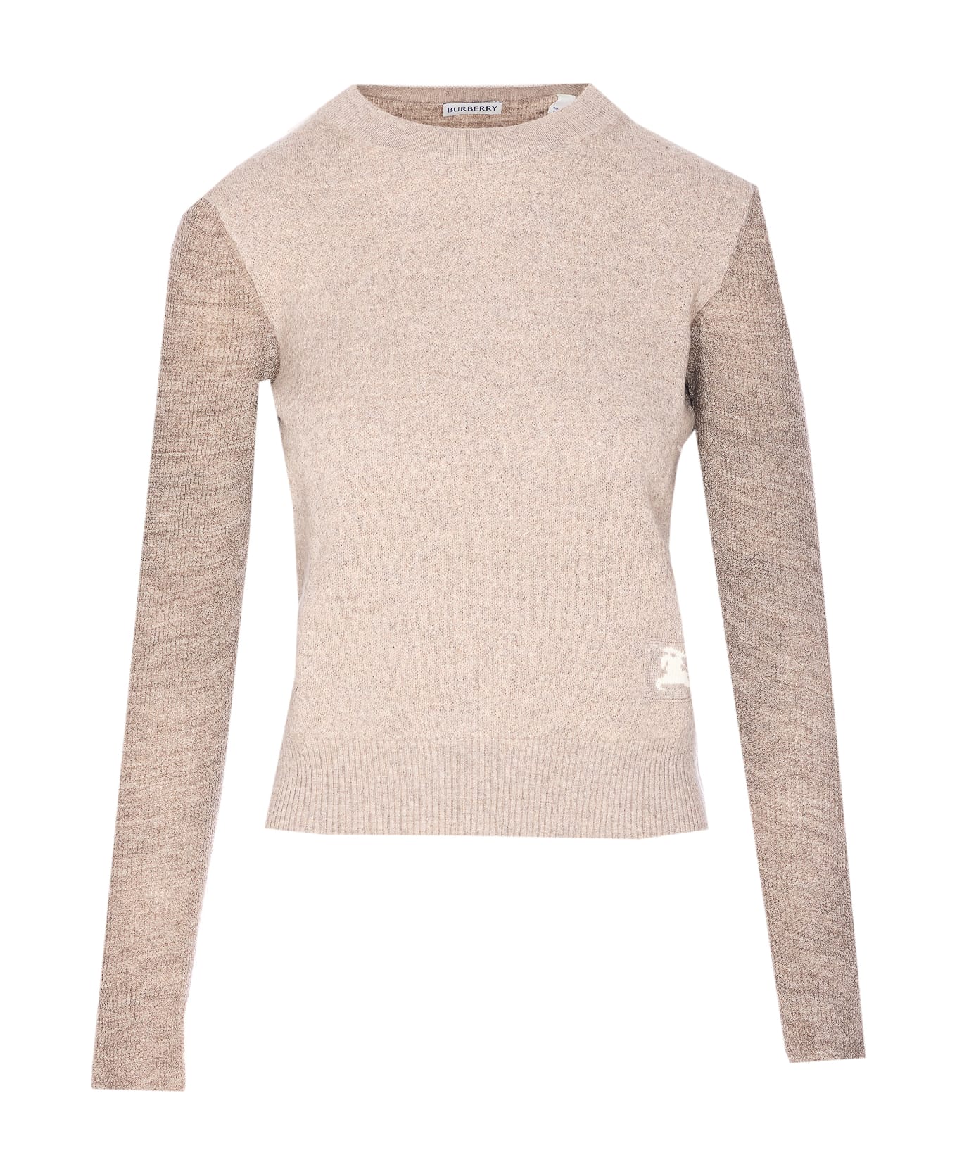 Burberry beige sweater, crewneck, long sleeves, embroidered logo on the front Composition: 70% Polyester, 30% Alpaca Wool, 100% Wool