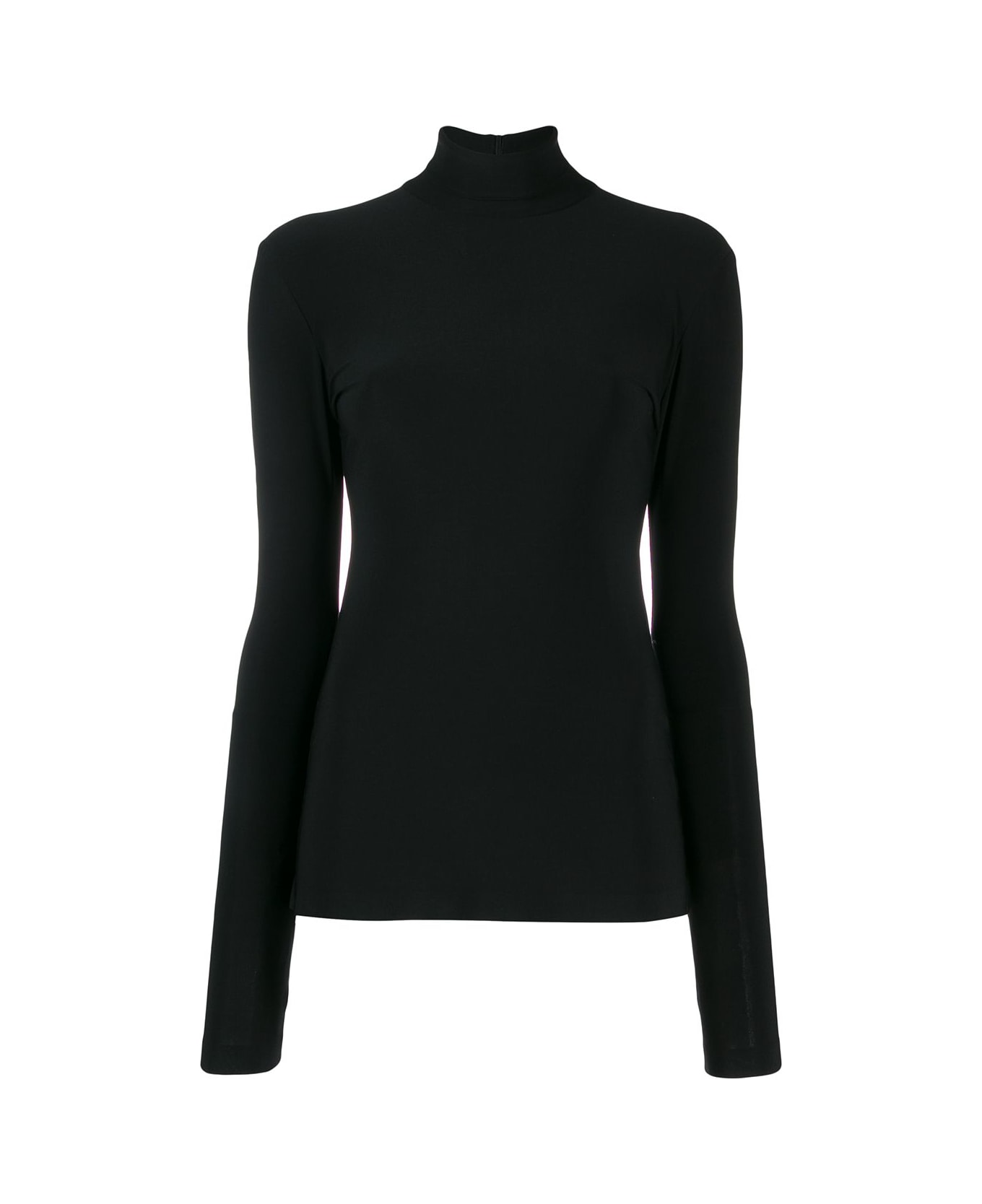Black slim-fit turtleneck top from Norma Kamali featuring a slim fit, a concealed rear zip fastening, a turtle neck and long sleeves. Composition: Polyester, 95% , Spandex/elastane, 5%