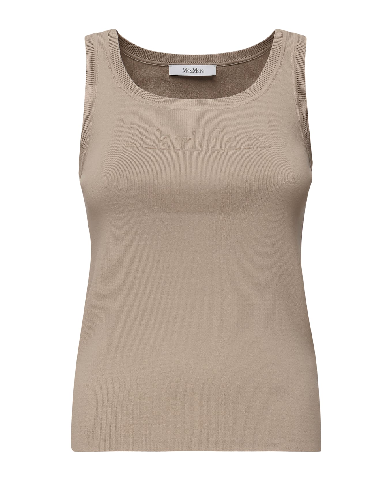 -Round neckline -Ribbed edge -Tone-on-tone embossed logo -Size shown in the photo is S -Color: Beige