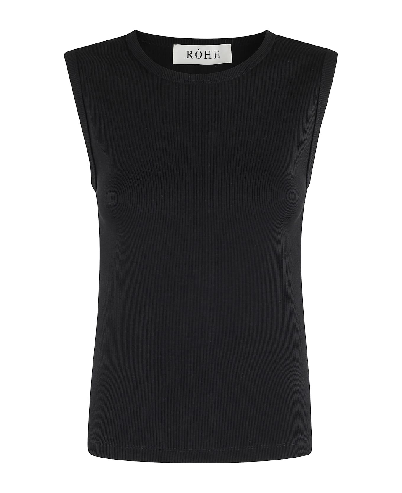 Dense tank top - Ròhe - Black color - Ribbed stretch fabric - Boat neckline - Regular fit