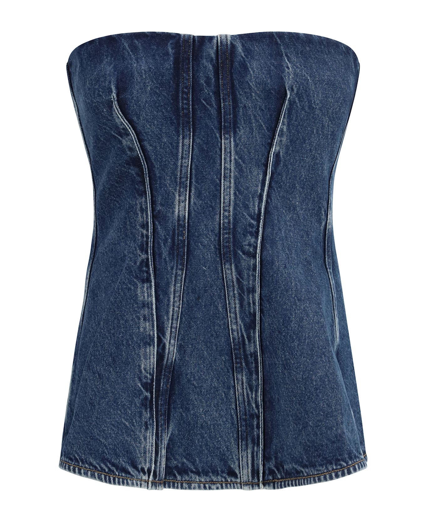The lara corset by agolde is a sleeveless denim corset top featuring a subtle a-line silhouette. crafted from weightless regenerative cotton, it offers a soft, lived-in feel. deep, almost-black marbling adds understated depth, making it perfect for layering or pairing with clean, tailored pieces.