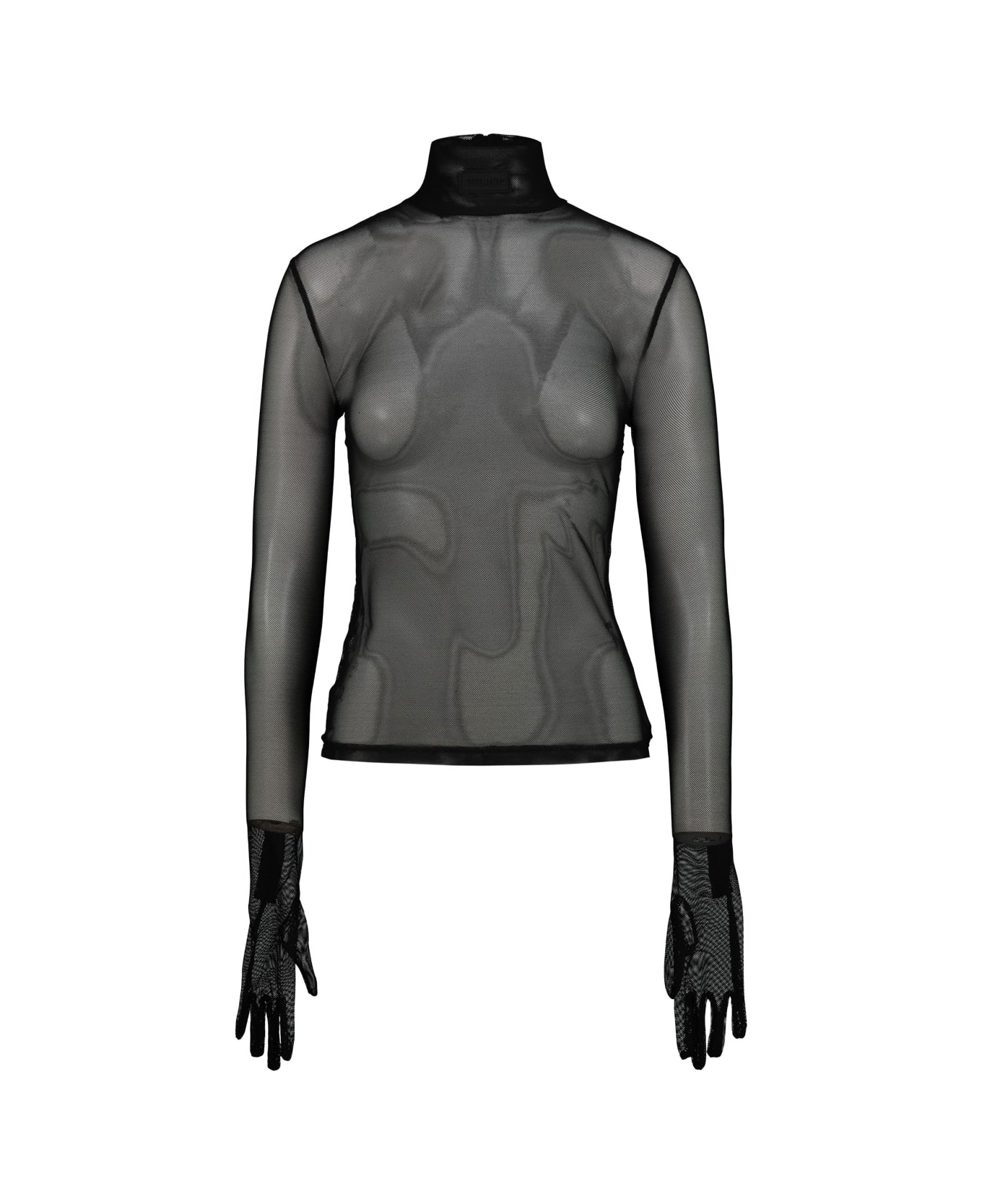 VETEMENTS stretch mesh turtleneck top, with gloves. GTIN code: WA65LS142B