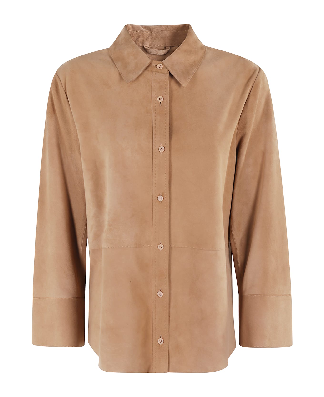 Shirt - Seventy - Biscuit color - Nappa suede fabric - Pointed collar - Long sleeve with high cuff and button - Front button closure - Regular fit