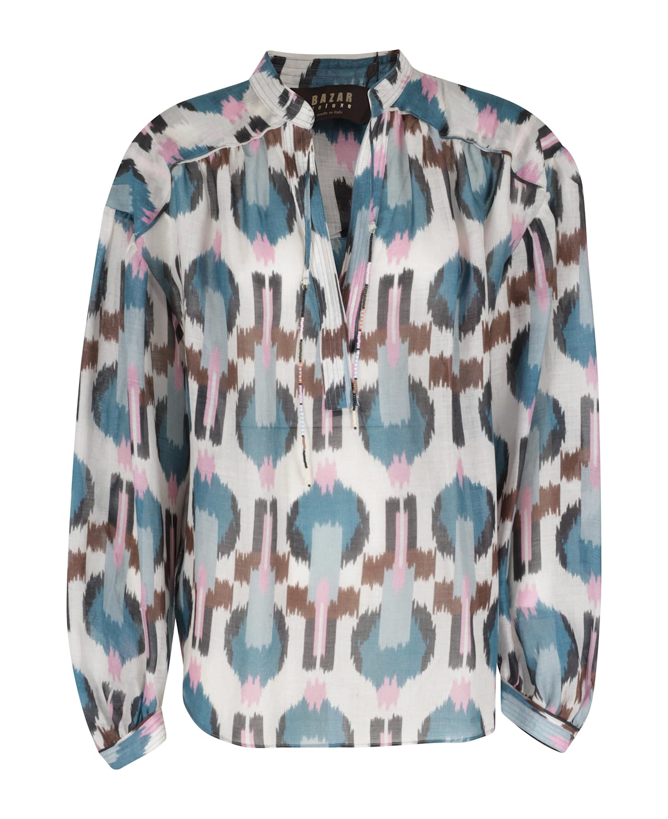 Category: Shirt Item: Linen Shirt Brand: Baza Deluxe Color: Multi Neckline: V-neck with laces and beads SIZE AND FIT Fit: Regular Sleeves: Long
