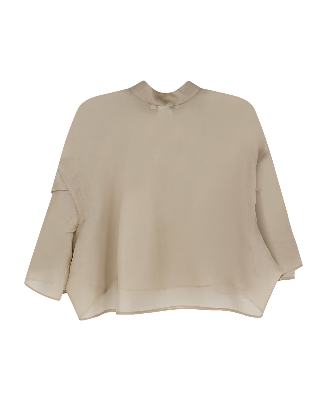 Button closure Wide short sleeves with ruffles Side buttons Crop fit Made in Italy 100% silk SKU: 2614731032600001