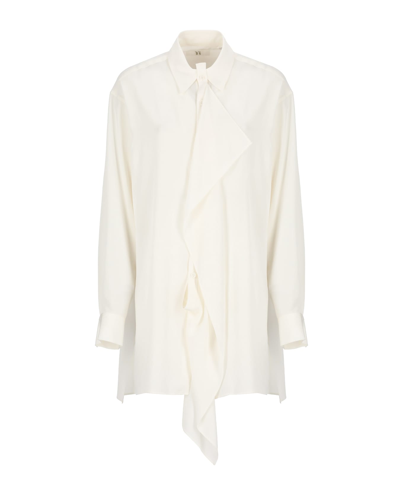 - Cream white Y's shirt for woman - Collar - Long sleeves - Front buttons fastening - Front draping detail - Two side vents at hem - Asymmetric hem - Oversize