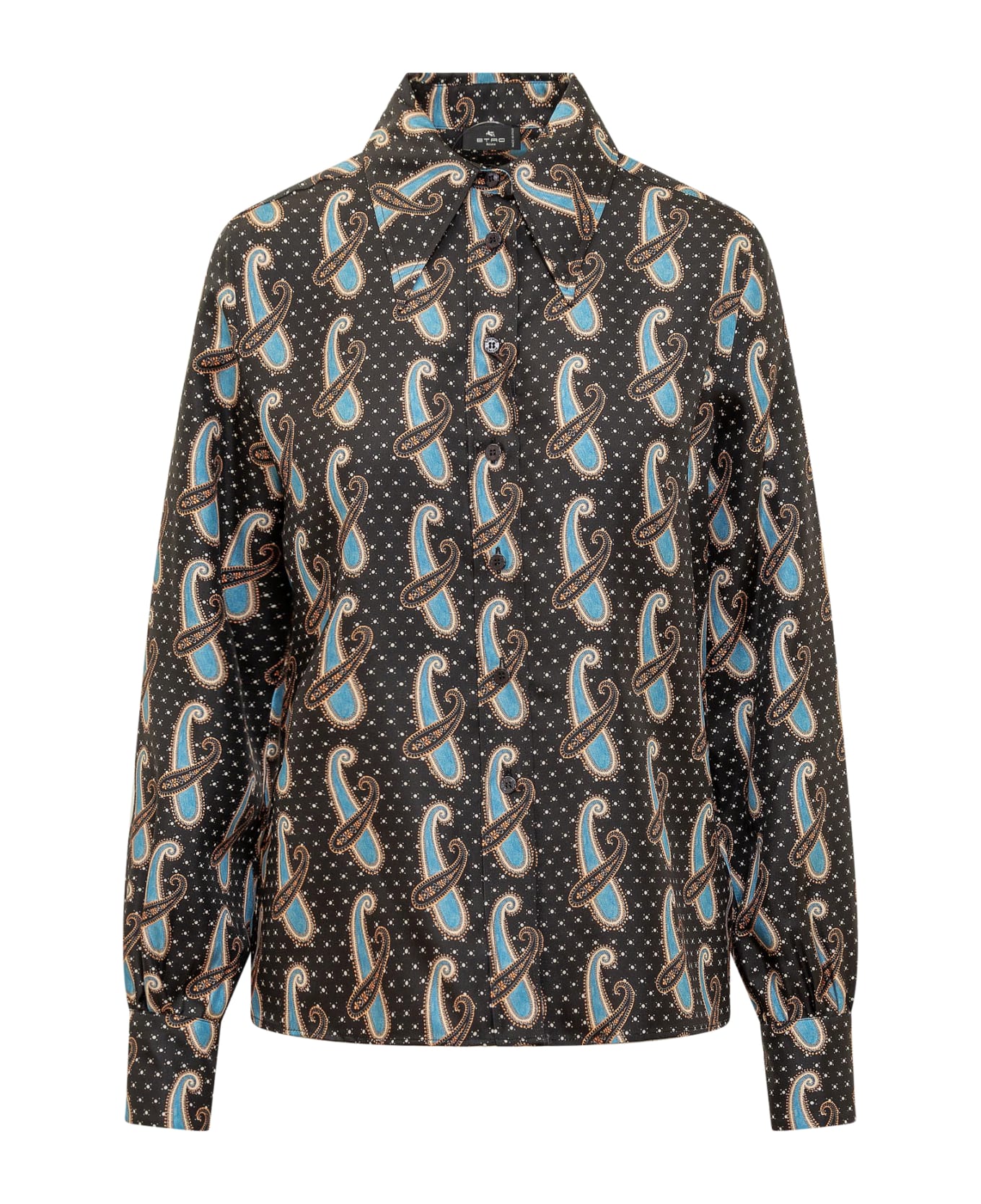 Long sleeve shirt. Classic collar. Buttons at the cuffs. All-over print. Button closure. Composition: 100% Silk