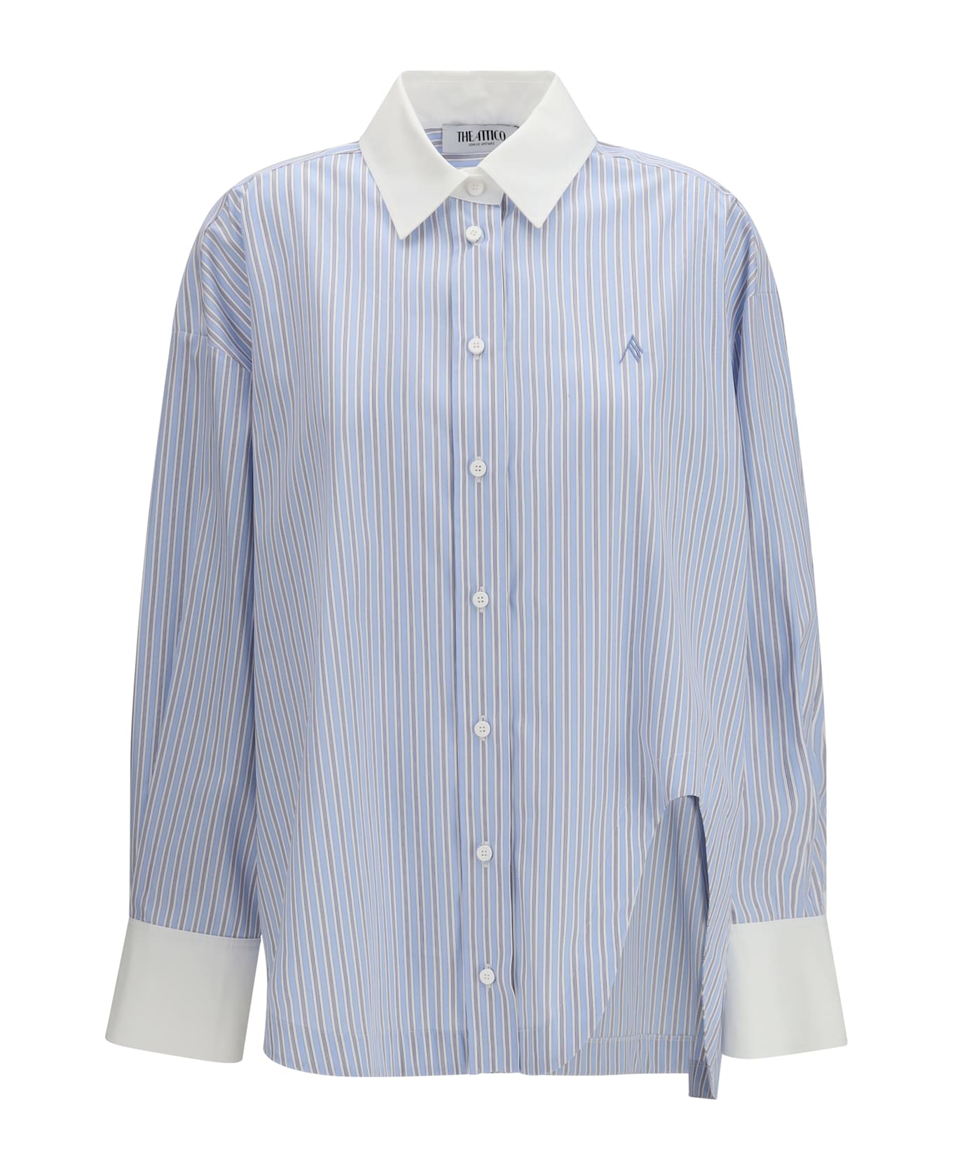 The striped shirt by the attico is a sophisticated garment with a touch of originality. the classic collar and long sleeves offer a traditional design, while the button closure and embroidered detail add understated elegance. the unique cut with a cut-out on the front adds a modern and bold element, making this shirt perfect for those looking for a contemporary yet refined style. Composition: 100% % Cotton