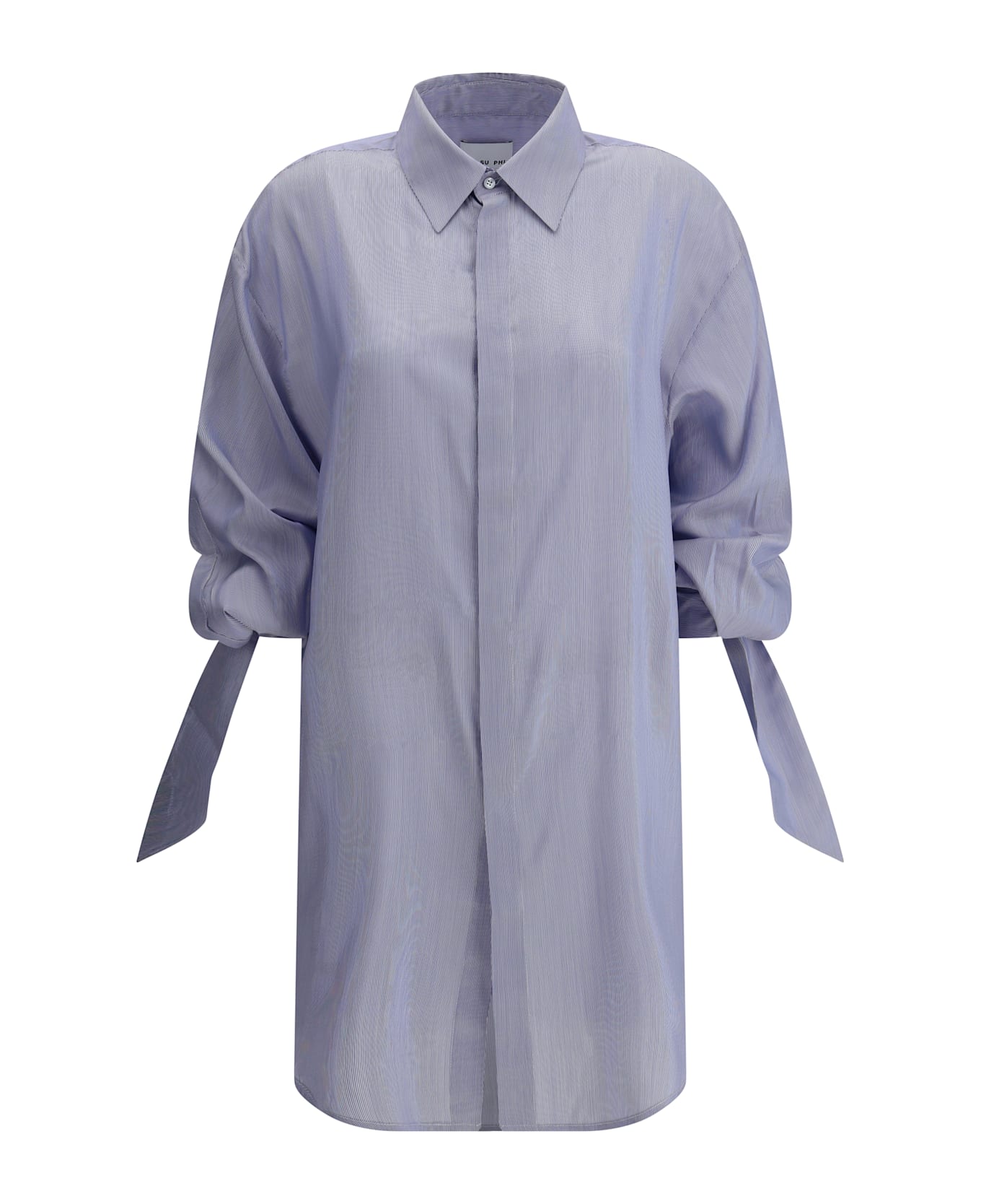 The susanna silk shirt by sa su phi is a refined and contemporary piece, featuring an oversized model that offers a loose and comfortable fit. the classic collar adds a touch of elegance, while the front closure with hidden buttons creates a clean and sophisticated look. the adjustable cuffs with knotted ribbon allow you to customize the fit, adding a practical yet chic detail. the two-tone vertical striped pattern adds dynamism to the design, creating an elegant and modern visual effect. a versatile piece, perfect for a casual yet sophisticated look.