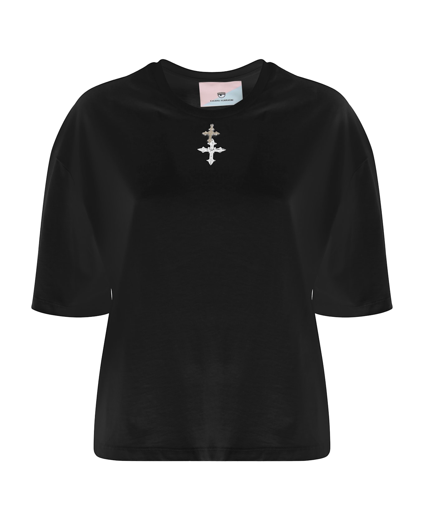 Chiara Ferragni, the eponymous line from the Italian influencer and blogger, is a charming collection of clothing, shoes, and accessories for women. The designs are playful, flirtatious, and bold, with bright colors and glittering accents.