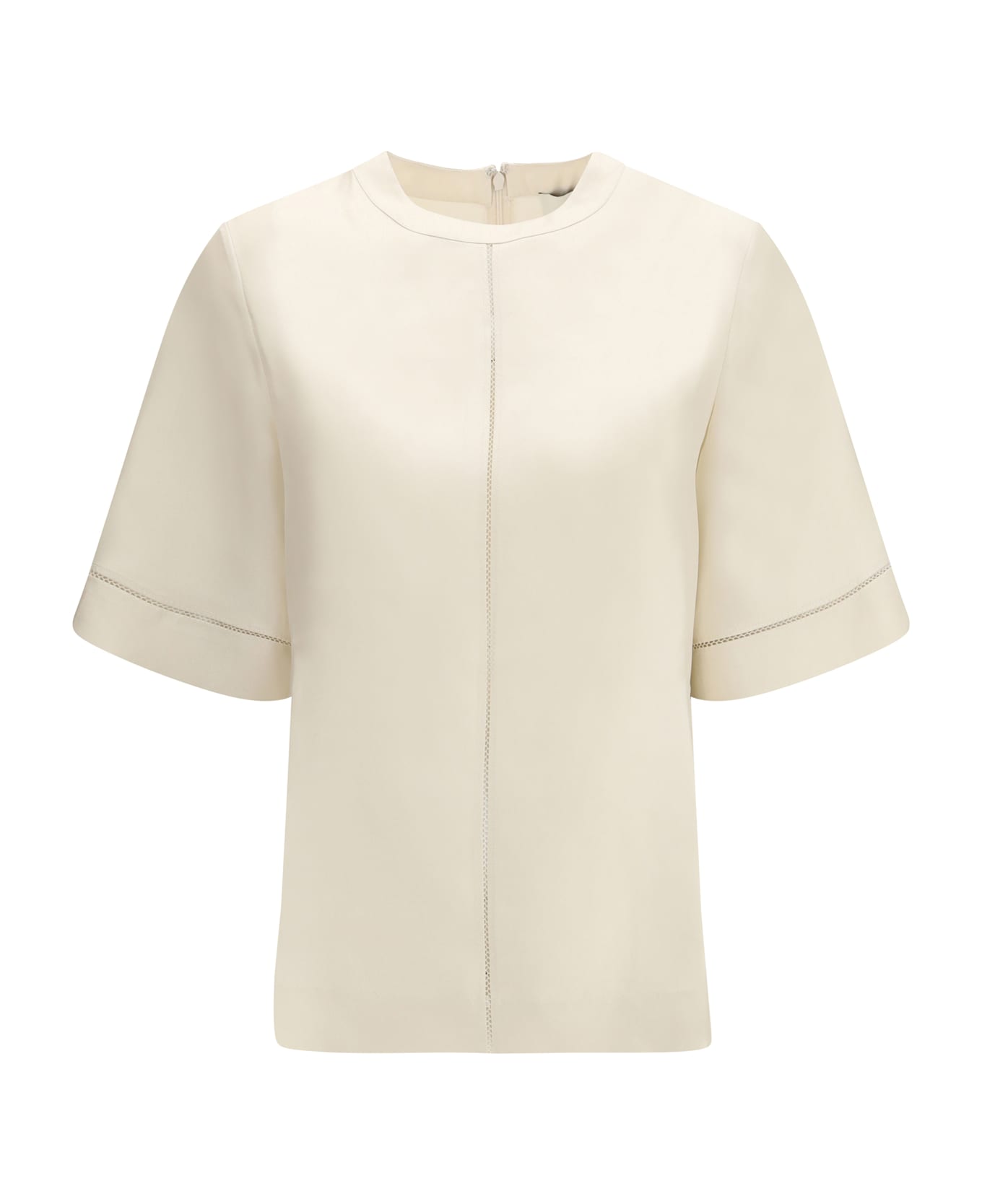 The havana silk t-shirt by loulou de saison is an elegant and refined garment, characterized by a loose fit that guarantees comfort and fluidity. the graphic lines are enriched with lace details on the front, back, and sleeves, adding a touch of femininity and sophistication. perfect for a casual-chic look, this t-shirt combines the luxury of silk with the delicacy of lace, making it ideal for elegant yet relaxed occasions.