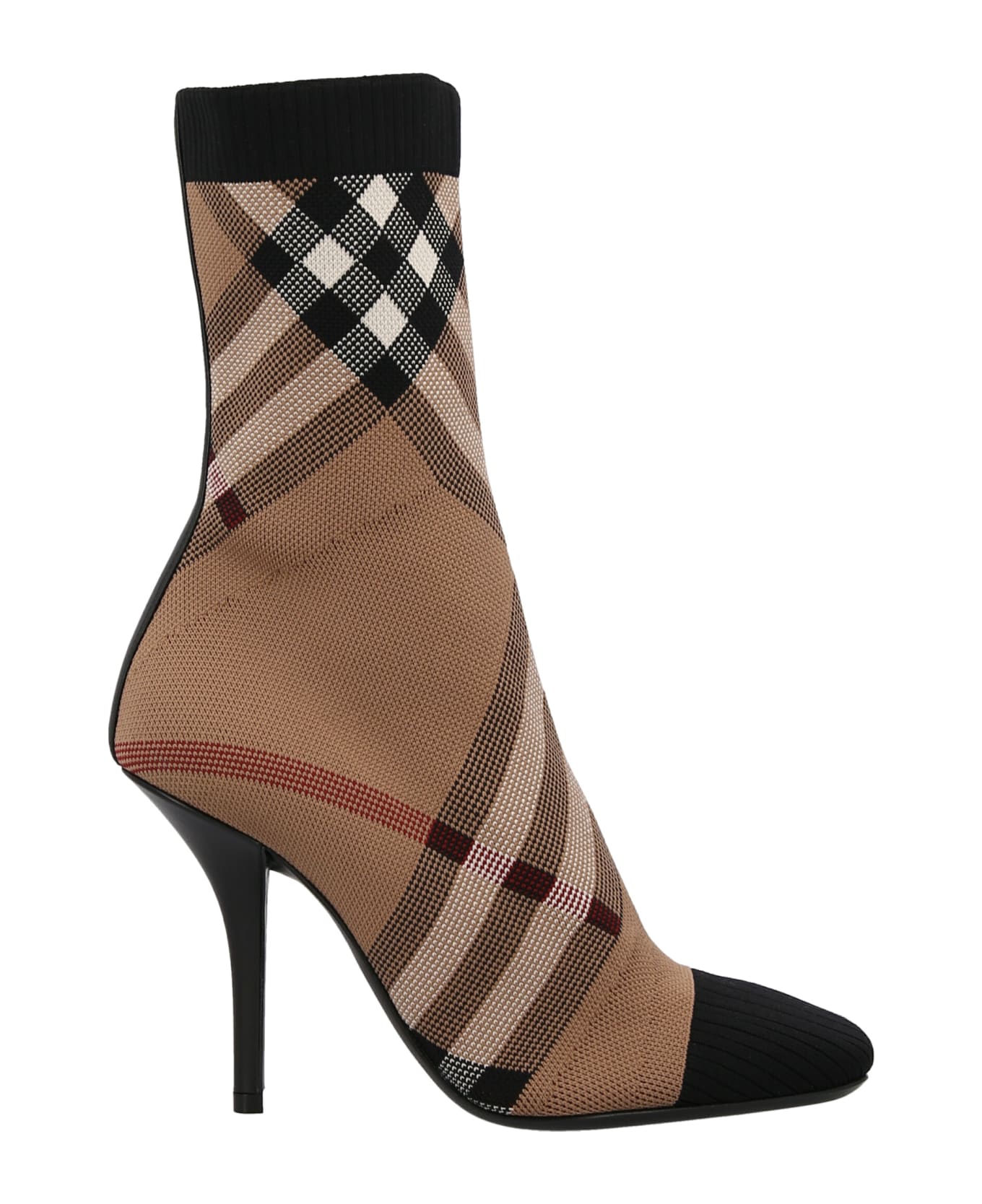 Dolman' sock-style ankle boots in a stretch fabric with check print, pointed toe and stiletto heels. Composition: