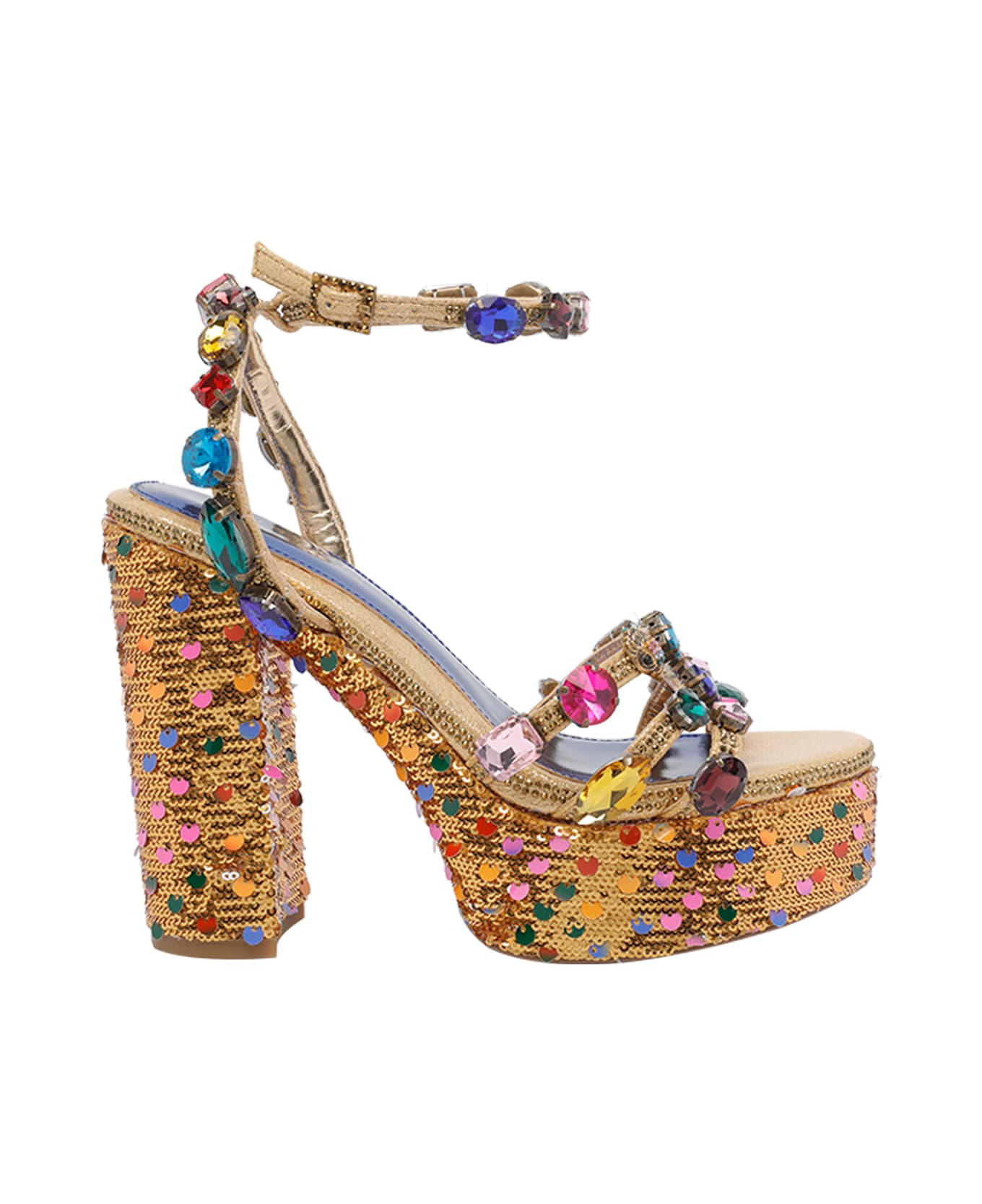Kurt Geiger multicolor Kensington jewel platform pumps, buckle closure, application jewel detail and sequins