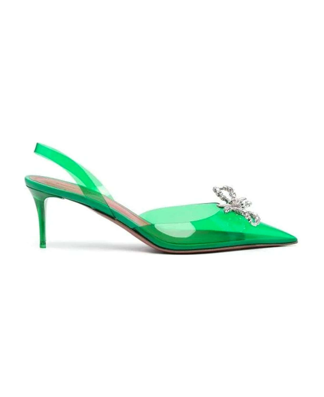Amina Muaddi is the eponymous footwear line known for pushing the envelope when it comes to glamorous flair. Muaddi was raised between Jordan, Romania, and Italy, and dedicates many of her design choices to the contrasting landscapes of the three locales. Muaddi continues to design for other footwear labels such as Alexandre Vauthier while expanding her own line. Amina Muaddi footwear is designed in Paris, made in Italy, and promises unrivaled originality.