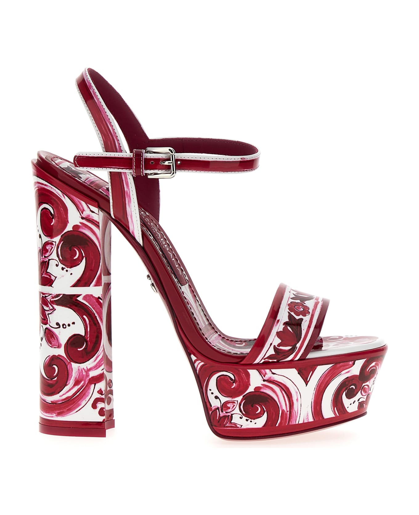 Keira platform sandals in shiny leather with maiolica print. Composition: