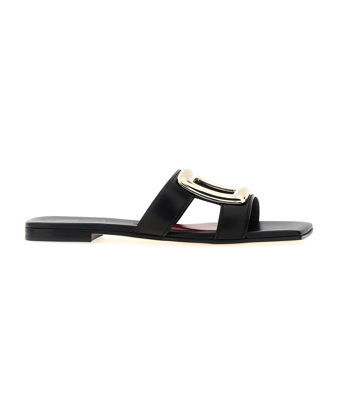 Leather 'New Metal Buckle' mule, metal buckle with engraved logo and cut-out details, leather sole.