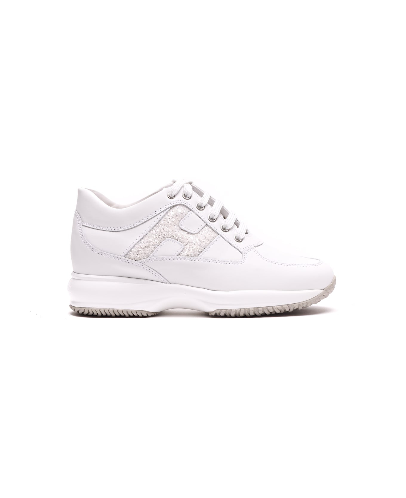 Hogan white Interactive sneakers, round toe, lateral logo, leather upper