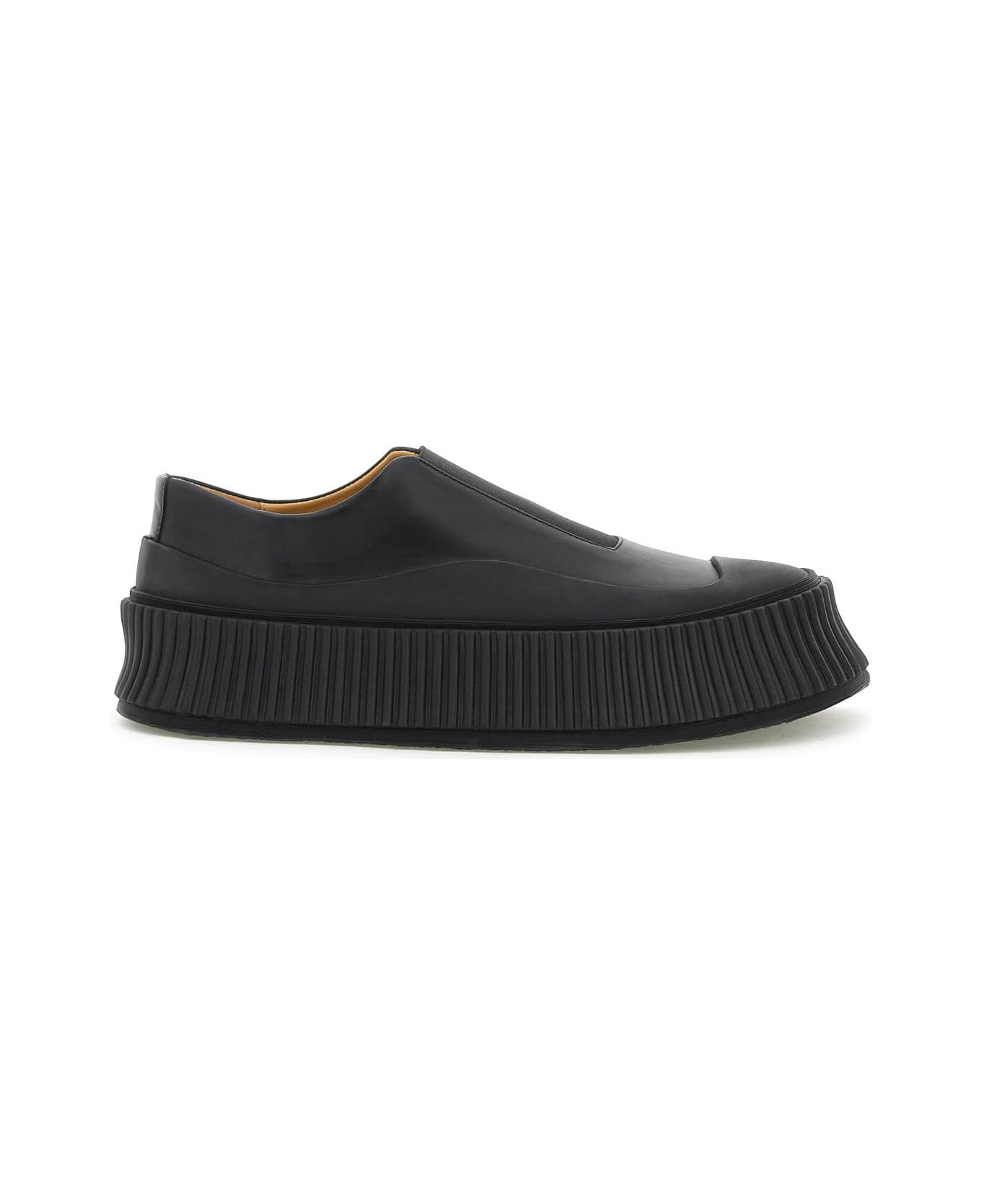 Jil Sander leather slip-on sneakers with With stretch insert on the upper. Leather interior with removable logoed insole and oversized vulcanized rubber sole. Composition: 100% LH