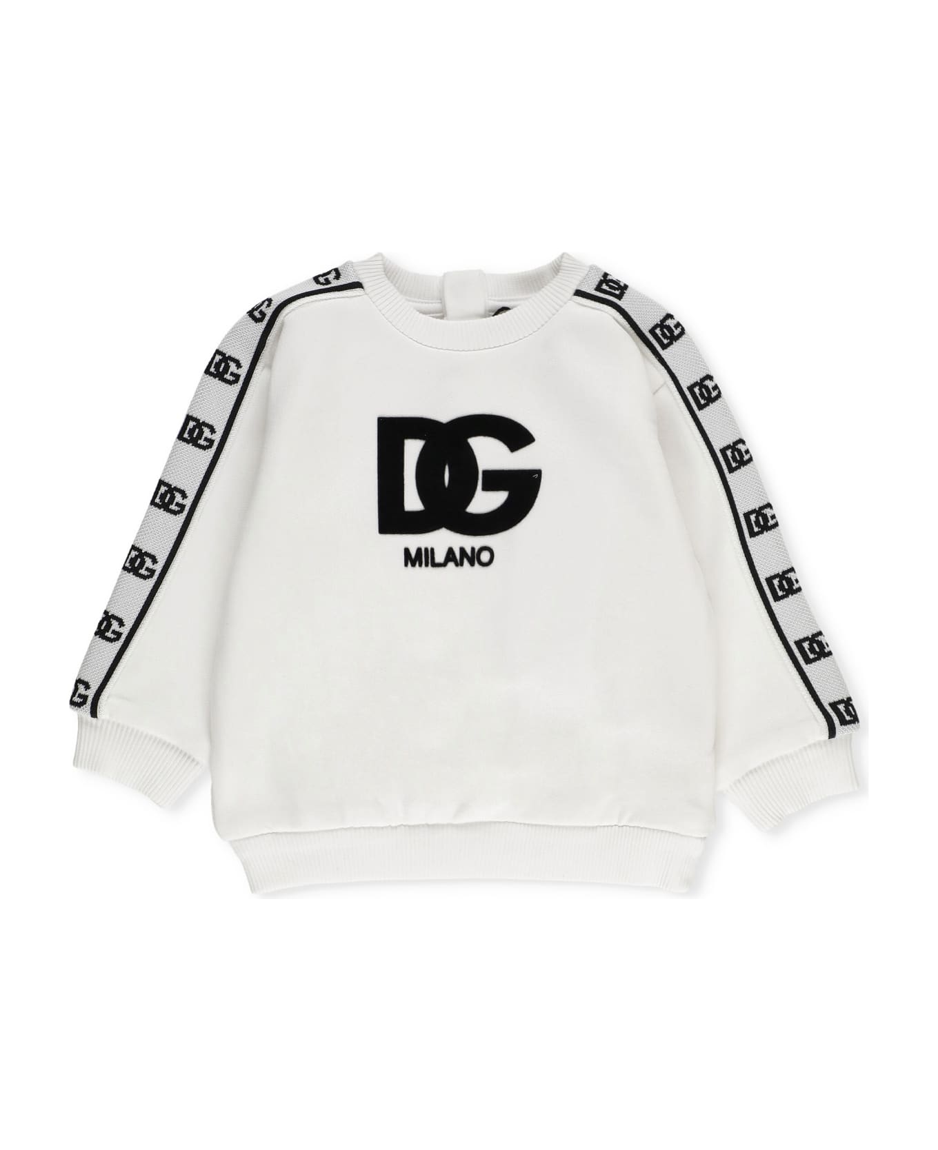 - White Dolce & Gabbana cotton sweatshirt for boy - Crew neck - Long sleeves with contrasting colour and fabric detail with logo - Elastic ribbed trims - Contrasting colour and fabric front logo - Rear buttons fastening