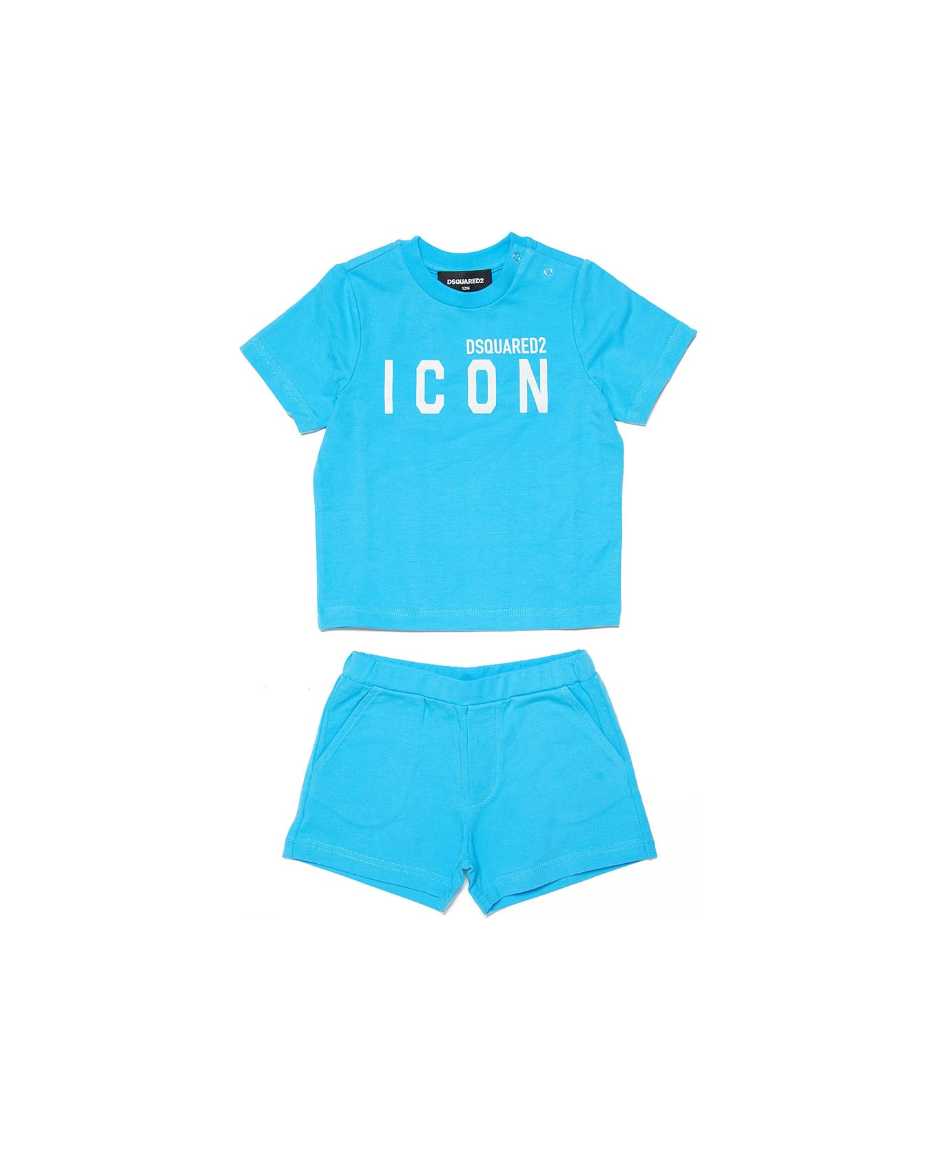 blue tracksuit unisex. Jersey construction, front logo print, crew neck, short sleeves, straight hem, jersey construction, elasticated waist and no opening design. Cotton 95%, Spandex/Elastane 5%