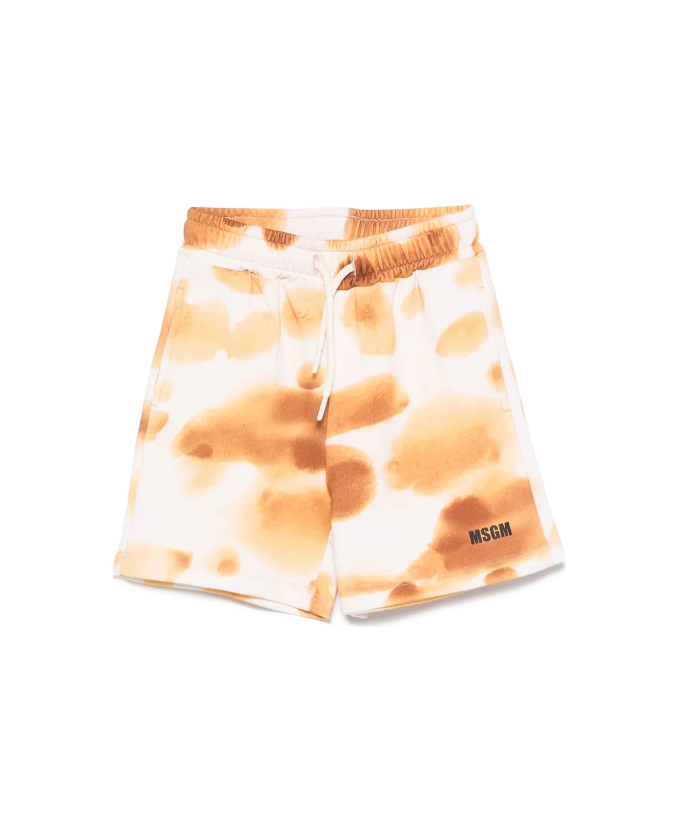 Bermuda con stampa astratta Caratteristiche beige chiaro vita con coulisse elasticizzata due tasche laterali tessuto in spugna stampa con logo sulla gamba Composizione cotone 100% Istruzioni per il lavaggio Lavare in lavatrice