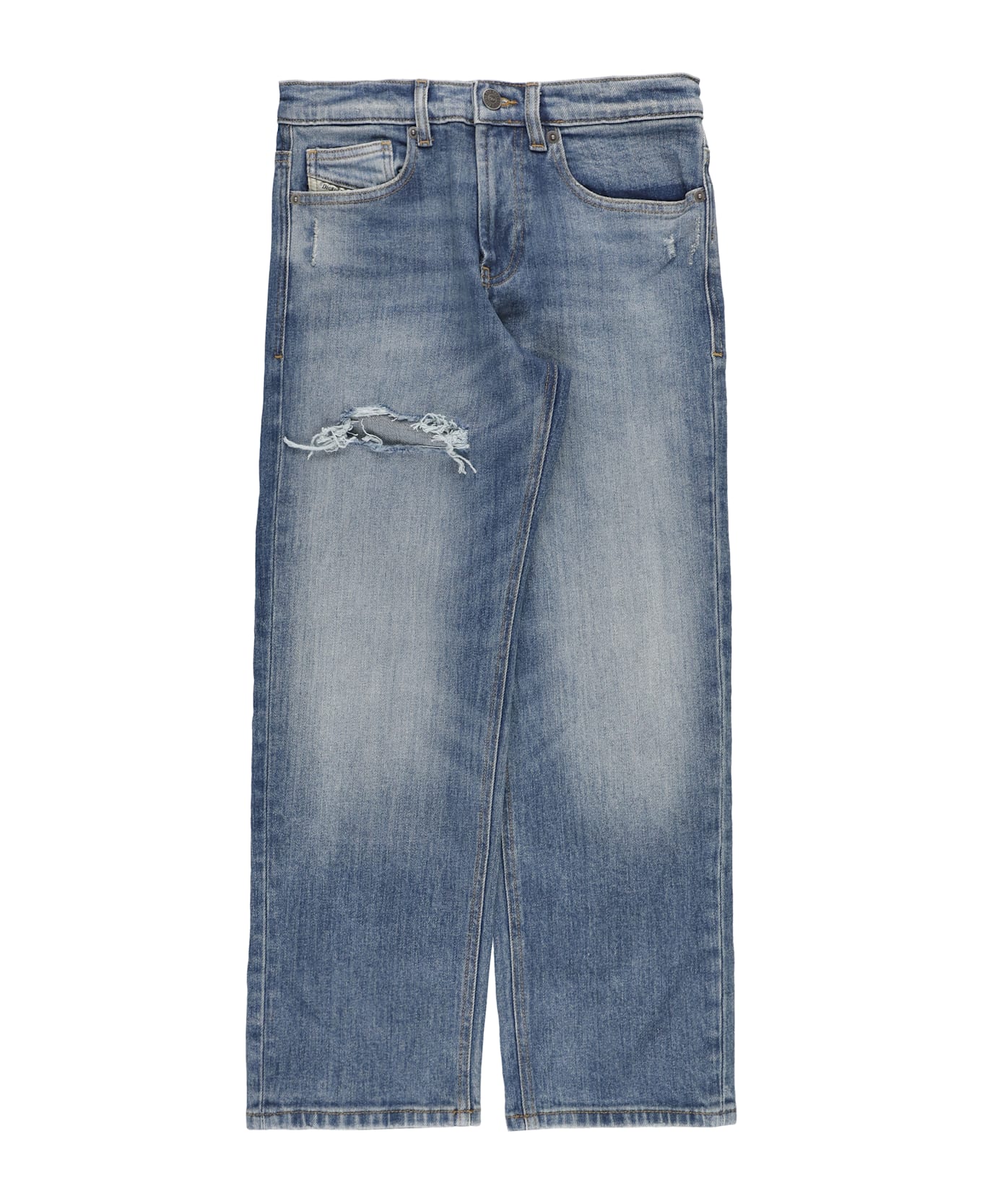 - Blue Diesel Kids cotton jeans for boy - Belt loops - Five pockets - Rear contrasting color logoed patch - Front zip e button fastening - Front ripped detail Composition: 99% Cotton, 1% Elastane