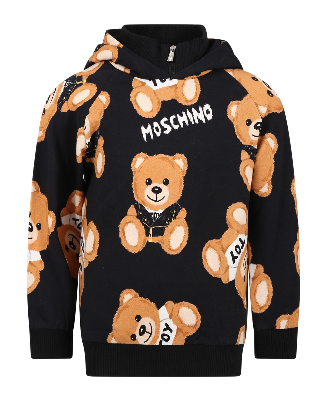 Black Sweatshirt For Kids With Teddy Bear And Logo